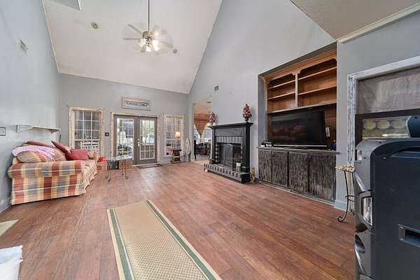 Discover your own private Shangri-La in South Georgia with this 2,583 sq. ft., 1.5-story home perfectly set on 6.2 acres just outside Lakeland. Close enough for everyday convenience yet far enough away for peace and privacy, this property has it all The home features 4 large bedrooms, 2.5 baths, and a spacious great room highlighted by a wood-burning fireplace. The master suite offers a generous 11x10 closet area, while the wrap-around porch invites you to take in the views. Outdoor living is the norm here with a private picturesque pond (approx. 2 acres per seller) and dock, a brick smoker for gatherings, and an abundance of fruit trees including banana, lemon, wild plum, and cumquat. A huge carport includes a 12x16 utility shop with power, ideal for storage, projects, or hobbies. If you're looking for room to roam, natural beauty, and a comfortable home with character, this is it. Priced to move--don't miss this rare opportunity in South Georgia!