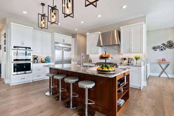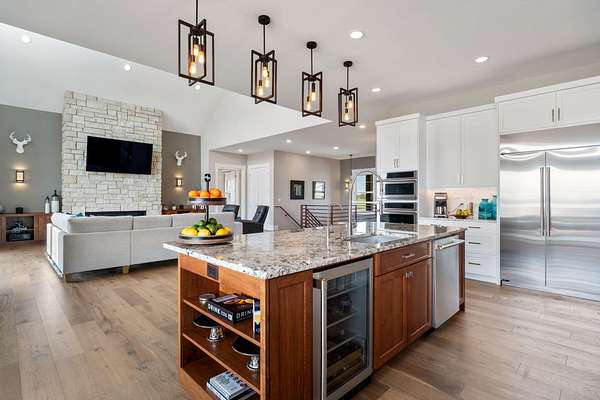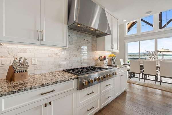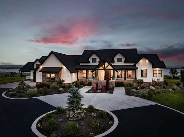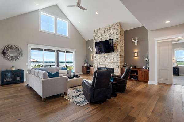 Est $13,350/moLakeside luxury meets self sustaining lifestyle! Enjoy luxury independence with this custom waterfront estate in Waters Edge: American Falls exclusive gated community. Designed to impress, this home showcases expansive living spaces: dramatic 22' vaulted ceilings, two 14' stone fireplaces, & 10' ceilings throughout with windows & glass sliders that frame truly breathtaking, panoramic water views!