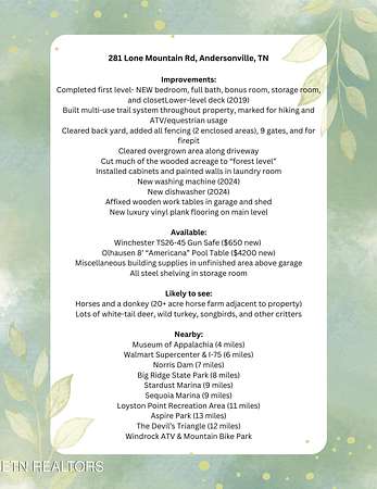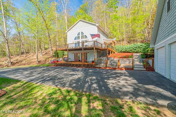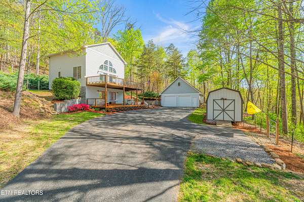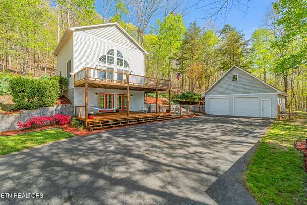 Escape to Your Private East Tennessee Sanctuary! Discover the perfect blend of rustic charm and modern versatility with this stunning A-frame retreat nestled on over 7 sprawling acres. Offering unparalleled privacy and a deep connection to nature, this property is a rare find for those seeking a permanent mountain escape, a vacation getaway, or a high-potential investment opportunity. The Main Residence The heart of the home is an expansive, open-concept living and kitchen area designed to bring the outdoors in. Towering ceilings and a massive wall of windows frame breathtaking views of your private acreage, bathing the space in natural light. The Loft: Retreat to the spacious upstairs loft, which serves as a grand primary bedroom overlooking the living area and the scenic vistas beyond. The Lower Level: The fully finished walk-out basement is currently a vibrant game room, but its generous proportions make it easily convertible into a large additional bedroom or a private guest suite. Outdoor Living & Recreation Experience the best of the Great Smoky Mountains region right in your backyard. The property features: Private Trails: Over 7 acres of wooded land complete with established walking and riding trails. Detached Garage: A versatile three car garage outbuilding providing secure parking and storage. Bonus Space: Above the garage, you'll find an unfinished upstairs area--perfect for a quiet home office, an art studio, or extra guest quarters. Investment Potential With its iconic architecture and secluded setting, this property is ideally suited for the short-term rental market. Whether you envision it as a premier Airbnb destination or a private family legacy estate, the flexibility of the finished downstairs and the bonus garage space offers endless possibilities.