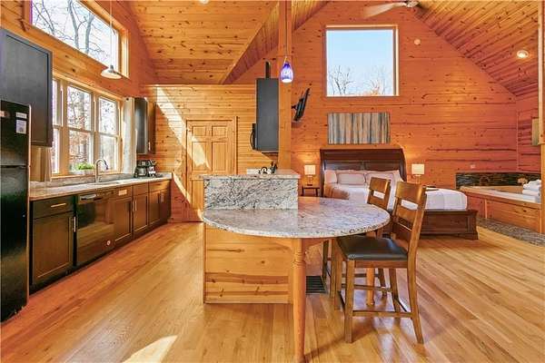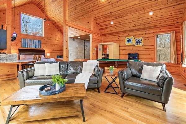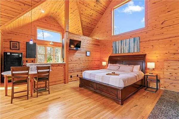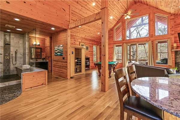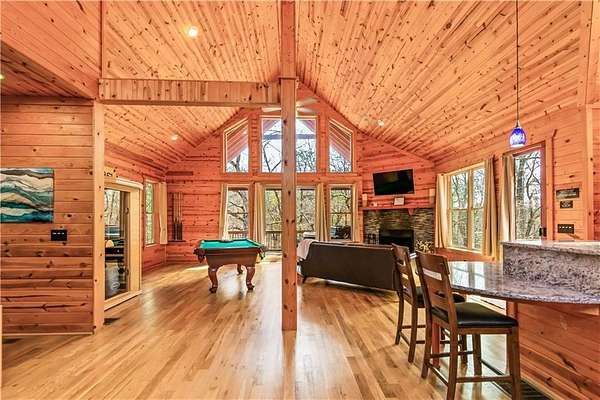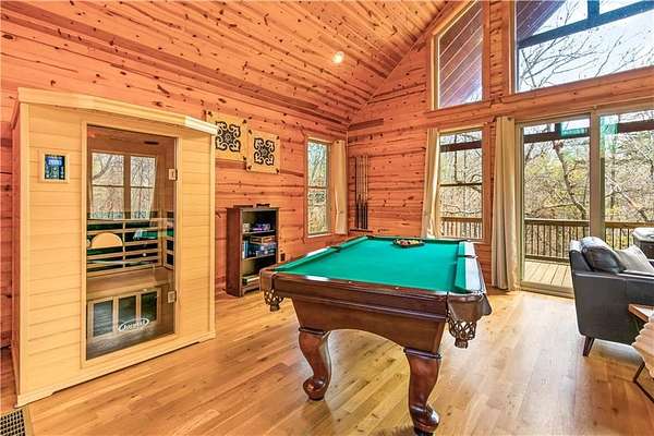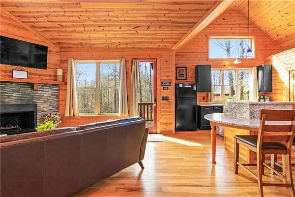 Welcome to "Radiance," where you can enjoy the best of both worlds with a private mountain retreat that also works hard as a high-end investment! This turnkey 1BR/1BA luxurious cabin in a gated community of CEDAR CREEK is the opportunity you've been waiting for, located just 20 minutes from all the dining and attractions in Helen. You'll love the "wall of windows" that lets the sunshine pour in, the spectacular natural wood finishes, and the gorgeous stone fireplace in the great room. The kitchen is ready for entertaining with granite countertops and stainless appliances, but the real highlight is the stunning, completely renovated oversized shower next to the relaxing Pure Air jacuzzi spa. Whether you're snuggling up by the fire, challenging your special someone to a game of pool, or relaxing in the infrared sauna and outdoor hydrotherapy spa, this cabin is designed for total relaxation. With an opportunity to continue to have it professionally managed and well-maintained by a local company with an office just two minutes away, the property is a proven income producer! Sold fully furnished and equipped with all appliances and add-ons, your future rental income is secured from day one-you'll be making money and enjoying your own getaway the moment you close!