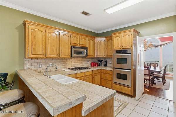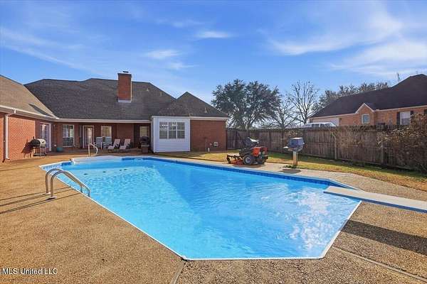 Discover your dream home nestled on 2 scenic acres in Byram, MS! This beautiful residence welcomes you with a formal foyer leading to an elegant dining room and a spacious den complete with wood burning fireplace and a butler's bar-perfect for entertaining. Enjoy four generously sized bedrooms and three well-appointed baths. The Primary bedroom is positioned at the rear of the home is spacious and features french doors leading out to the back patio and pool. The Primary bathroom has a spa like feel - large jetted tub, separate shower and double vanities. The kitchen boasts a breakfast bar, breakfast room and a large pantry, making meal prep a breeze. Relax in the expansive sunroom, which seamlessly connects to a covered back patio overlooking a sparkling swimming pool. The vast, fenced backyard offers ample space for outdoor activities. Over-sized two car garage and workshop! If you're seeking a stylish, move-in-ready home, this is the one for you!