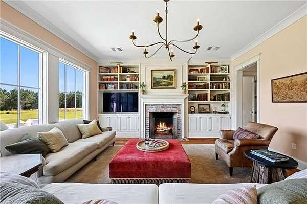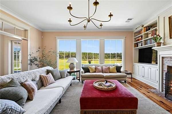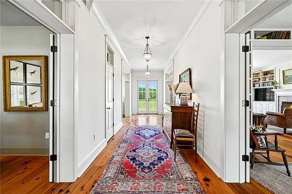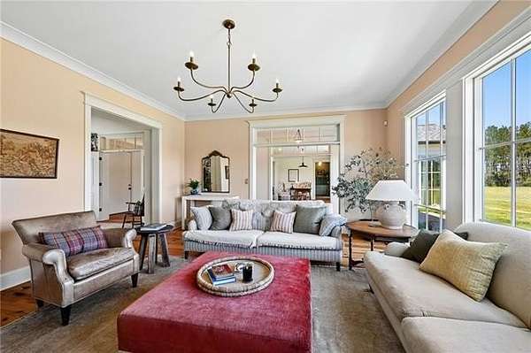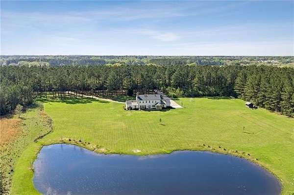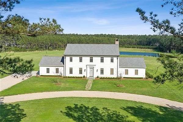 Tucked away on 18 acres behind the gates of The Plantation on Old Military Rd, this extraordinary custom estate redefines private luxury living. Offering serenity, security and designed to capture its breathtaking surroundings, this five-bedroom residence is anchored by dramatic floor-to-ceiling windows that flood the interiors with natural light and frame sweeping views in every direction. Rich wide-plank wood floors run throughout, adding warmth, texture, and a timeless sense of craftsmanship to the home’s elevated design. Each space feels intentional and refined, seamlessly blending indoor elegance with the peaceful landscape beyond. Step outside to experience true country estate living - rolling acreage, mature surroundings, and a fully stocked private pond that creates a tranquil focal point for both relaxation and recreation. An inviting outdoor patio, designed for dining, extends the living space into the open air, perfect for entertaining or enjoying quiet evenings surrounded by nature. Whether hosting under expansive skies or savoring peaceful mornings overlooking the water, this property delivers a lifestyle that is both grand and grounded. A rare offering within one of the area’s most exclusive gated communities, this is more than a home—it’s a private retreat designed for those who value space, beauty, and uncompromising luxury.