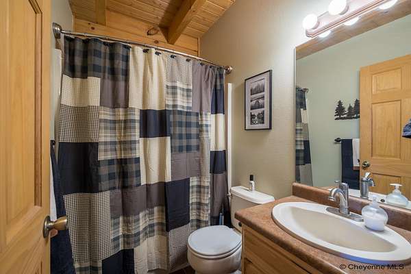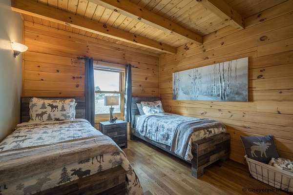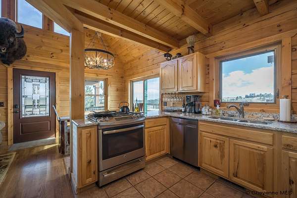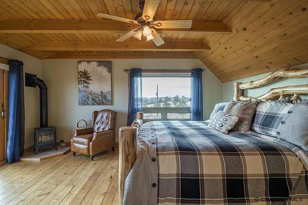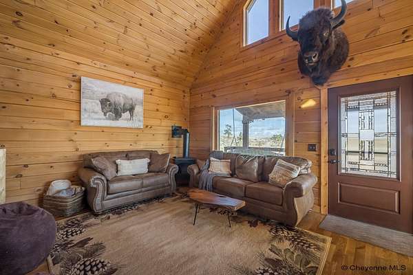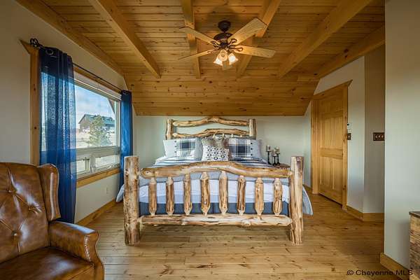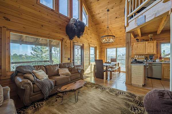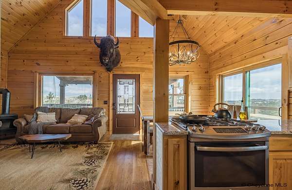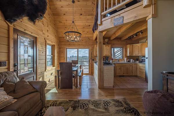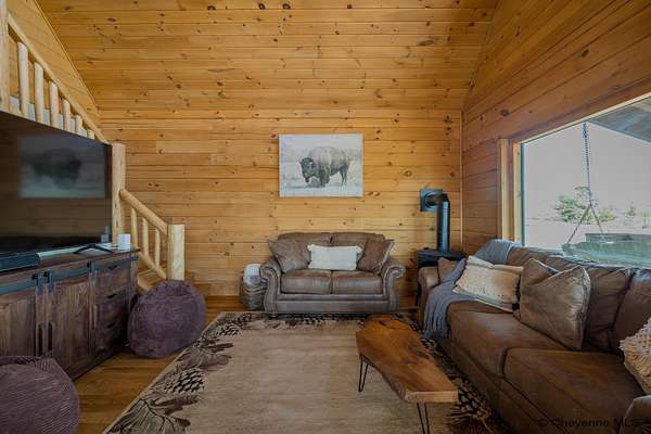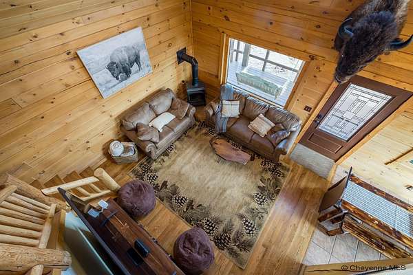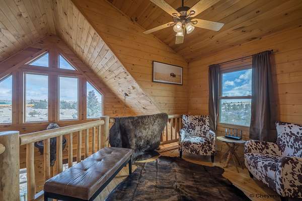 Tucked away in the quiet beauty of Granite Springs, just minutes from Curt Gowdy State Park, 281 Valley View Ct is the mountain retreat you’ve been waiting for. Set on 5.77 acres with stunning views, this log cabin offers the perfect blend of peace, privacy, and adventure. Enjoy quiet mornings and wildlife sightings - deer, antelope, even moose - right from your wraparound deck. Inside, you’ll find vaulted ceilings, warm wood finishes, and a beautiful kitchen with granite countertops and updated appliances. The main floor features a cozy living room with a gas stove, 2 bedrooms, full bath, and laundry. Upstairs, the home continues to surprise. A loft overlooks the living space below, creating an open, airy feel. The primary suite is a true retreat, complete with a walk-in closet and private access to the wraparound deck, where the views stretch endlessly and the quiet feels like a luxury. A second full bathroom completes the upper level. Just steps away sits the 720 sq ft "bunk house" - a space where memories are made. With bunk beds lining the walls, a game table, sofa, TV, and wood stove, it’s the ultimate gathering place for family, friends, and weekend adventures. Whether you keep it as a fun-filled retreat, transform it into a workshop, or create something entirely your own - it’s a space full of possibility. With an attached 3 - car garage, room to roam, and the option for the home to be sold furnished, this property is more than just a house...It’s a place to unplug. A place to gather. A place to create a life you don’t need a vacation from. 281 Valley View Ct - where mountain living meets everyday comfort.