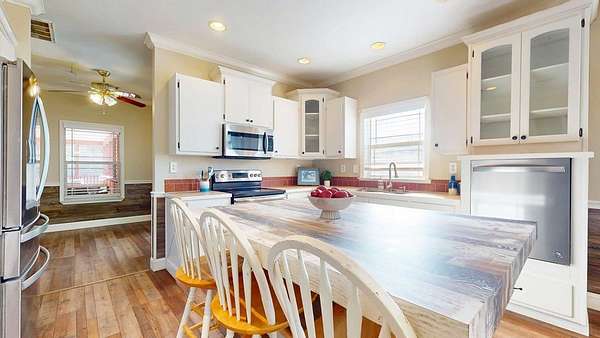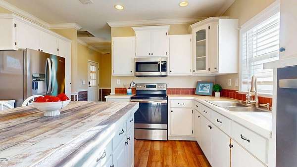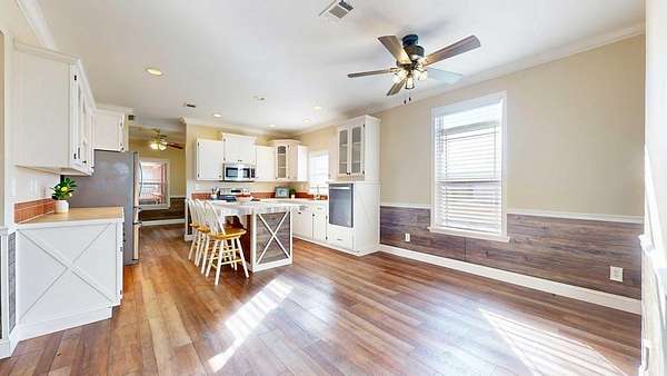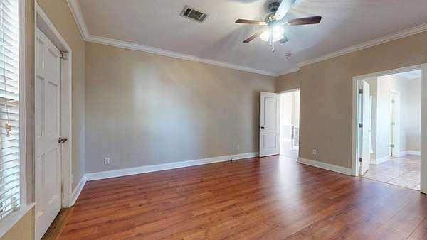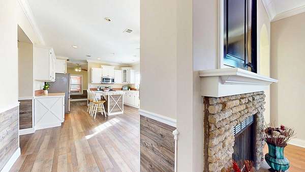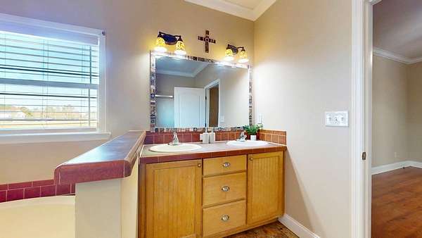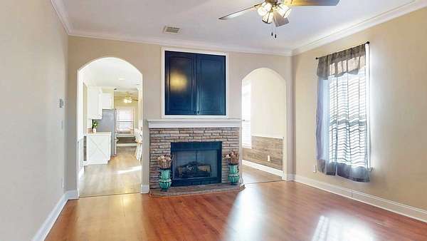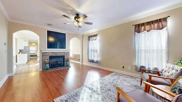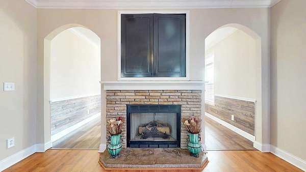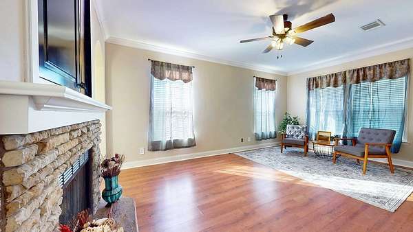 - Blinds, Ceiling Fan(s), Crown Moldings, Fireplace, Garden Tub, Laundry Room, Light & Airy, Main Level Master Suite, Master Bedroom Walk-In Closet, Moulding, Open Floorplan, Separate Shower, Sheetrock, Tub/Shower Combo