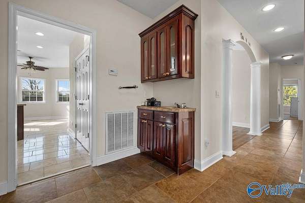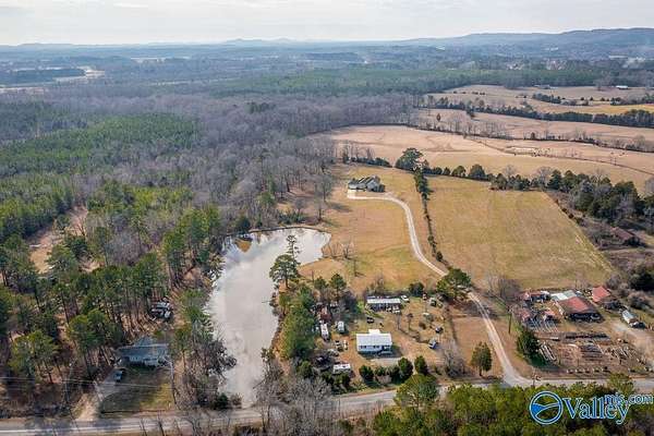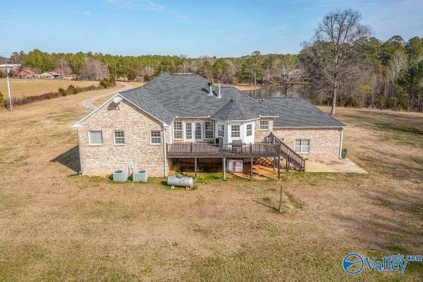 NORTH GADSDEN | 11 ACRES +/- | LAKE | PRIVACY | FLEX SPACE | Beautiful 3BDRM/2.5BTH family home privately nestled on a level acreage tract overlooking a scenic lake! Light & airy family room accented w/ soaring ceiling & fireplace! Kitchen w/ ample cabinets, work island, stainless appliances, pantry & eat in kitchen! Extra plate storage/wet bar area between kitchen & formal dining! Spacious primary BDERM w/ HIS & HER vanity bowls, tub for relaxing & shower w/ double heads! Bedrooms #2 & #3 are perfect size for children/guest. Flex space offering a great spot for a home office or play room! Plenty of room to expand w/ approx 2600 ft of unfin basement (per appraisal.) Back deck great for BBQs!