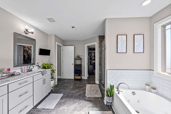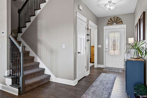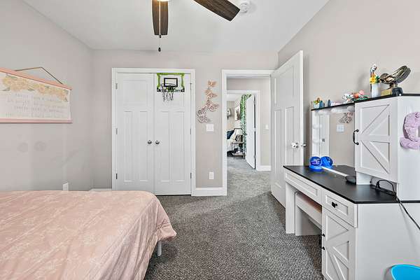 All bedrooms located upstairs to include a bonus room or 5th bedroom. The spacious primary suite serves as a private retreat with a walk-in closet the size of a bedroom, tile flooring, double vanities, a stand-up shower, and a soaking tub. Outdoor living truly shines with a screened, covered back patio, fully fenced yard, above-ground pool, and a firepit for evenings under the stars. A lifetime swing set conveys, making this property just as enjoyable for play as it is for relaxation.