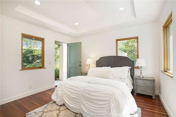 Set on 2.8 acres in the heart of Modjeska Canyon, this custom Mission Revival estate combines elegance, privacy, and nature. The main home offers 5 bedrooms and 8 bathrooms, with vaulted ceilings, Brazilian cherry wood floors, and oversized windows that fill the home with light. The living room showcases a statement fireplace and opens to the outdoor patios through French doors. The kitchen is outfitted with premium appliances, a center island, and a large butler's pantry perfect for entertaining. The primary suite features a steam shower, limestone counters, and two walk-in closets. A detached guest casita includes its own kitchen, bedroom, and bathroom. The property boasts over 50 mature fruit trees, a horse stable, and space for a pool or vineyard. Includes a 5-car garage with a workshop, fire-sprinkled attic, and direct access to nearby hiking and equestrian trails. A one-of-a-kind escape offering timeless style and California lifestyle living.