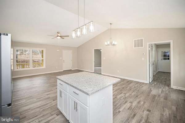 New construction situated on 3.09 acres in Unionville, Virginia, offering a blend of modern finishes and country setting. This thoughtfully designed home features an open floor plan, vaulted ceilings, and abundant natural light throughout the main living areas. Luxury plank flooring adds durability and style across the shared living spaces. The kitchen includes granite countertops, a large center island, shaker-style cabinetry, and stainless steel appliances, providing both function and a clean, timeless look. The adjoining living and dining areas create an easy flow for everyday living and entertaining. The covered front porch and rear deck offer additional outdoor living space overlooking the property. A creek runs along the back of the lot, adding to the natural setting and providing a peaceful outdoor backdrop to explore. The primary suite includes a private bath and spacious closet. Two additional bedrooms offer flexibility for guests, office space, or other household needs. High-speed internet is available at the road, offering convenient connectivity in a rural setting. Located with easy access to the Town of Orange, Locust Grove, Culpeper, and Fredericksburg, this property offers a country atmosphere while remaining within reach of shopping, dining, and other everyday amenities. Photos are of a previously completed home with similar floor plan and finishes and are provided for reference only.
