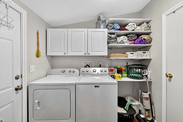 - Ceiling Fan, Garage Door Opener, Laundry, Vaulted Ceiling