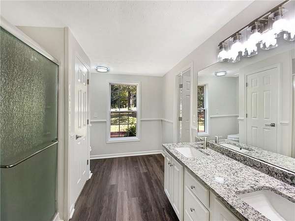 Classic Brick Beauty on a Peaceful Country Road! Welcome home to 2811 Carnes Rd, Jonesboro, GA - a traditional brick residence offering timeless curb appeal, modern updates, and exceptional living space. Nestled on a quiet country road yet conveniently close to city amenities, this home blends comfort, functionality, and style. Step inside to find new LVP flooring throughout the main living areas and new carpet in all bedrooms. The spacious owner's suite on the main level features dual vanities, quartz countertops, a separate soaking tub and shower, walk-in closet, and private access to the deck for relaxing mornings or peaceful evenings. The main level also includes a separate dining room with a view into the kitchen, a comfortable living room with a factory-built fireplace, and two additional bedrooms with a shared full bath. The full finished daylight basement offers a versatile layout with two bedrooms, a shared bath, private entry, and laundry area-perfect for multi-generational living, guests, or recreation space. Enjoy outdoor living at its best with a fenced backyard, covered patio, and deck-ideal for gatherings or quiet evenings surrounded by nature. Conveniently located near I-75, Tara Boulevard, and local shopping and dining options, this home provides easy access to Clayton County International Park, Lake Spivey, and nearby recreational areas. Don't miss this beautifully updated home that offers the perfect combination of traditional charm, modern upgrades, and a prime location!