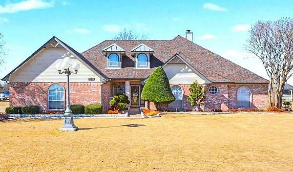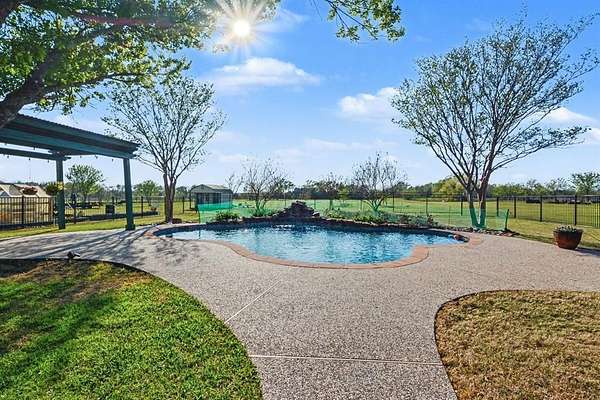 Recent price improvement! NO HOA! Welcome to 2811 Gilmer St, a rare 2-acre in-town property offering space, privacy, and exceptional features throughout. This beautifully updated home showcases an open floor plan with 4 bedrooms, 3 bathrooms, formal dining, breakfast room, family room, and an upstairs media room with stunning views of your private backyard retreat. Step outside and enjoy a true outdoor oasis with multiple shaded sitting areas, some covered, a swimming pool with rock fountain, hot tub, and even a fruit orchard perfect for relaxing or entertaining family and guests. Inside, you’ll find wood flooring, ceramic tile, granite countertops, a large island, and a spacious laundry room with sink. Movie nights are a dream in the media room featuring a 120-inch screen. Additional highlights include a 2-car garage, a separate building ideal for a workshop, boat storage, or parking up to two vehicles with three roll-up doors, plus a small storage building. The wrought iron fenced backyard adds both charm and function. This hard-to-find 2-acre property within city limits is conveniently located near the highly sought-after Caddo Mills ISD. Don’t miss this unique opportunity schedule your private tour today!