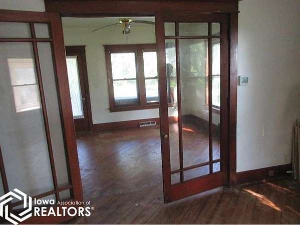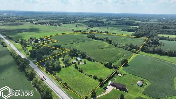 45.21 acres, m/l, located 2 1/2 miles north of Iowa City, Iowa on the west side of Iowa Hwy 1. This farm has an estimated 37.23 FSA/Eff. crop acres with a CSR2 of 51.30. The two-story house was built in 1921 and contains 1,631 square feet\ of finished living space. The main level features a kitchen, dining room, living room, and one bedroom. The refrigerator and gas stove are included with the property. The second floor has three bedrooms, one bathroom, and a finished attic space. Most of the living areas have solid wood flooring and trim. The basement is block construction and contains an LP hot water heater, pressure tank, breaker box, fuse box, and two sump pits. The forced-air heating and air conditioning unit was installed in July 2024. Outbuildings include a 24' x 24' garage, a 56' x 30' barn, a 24' x 22' crib, a 26' x 30 foot shed with an 8' x 26' lean-to addition. This is an attractive rural setting located north of Iowa City, along Highway 1. It includes a farm house with out buildings and rolling cropland with a small creek.