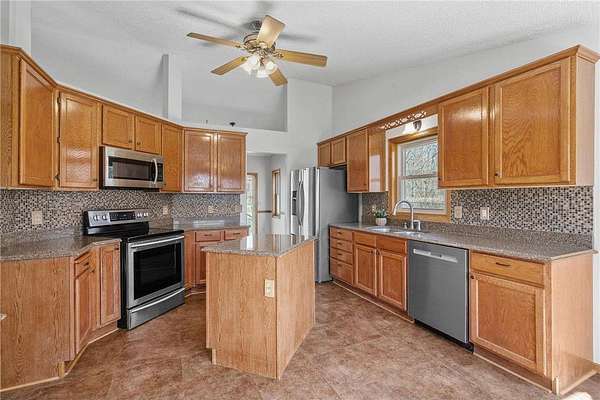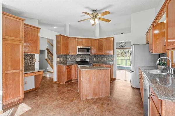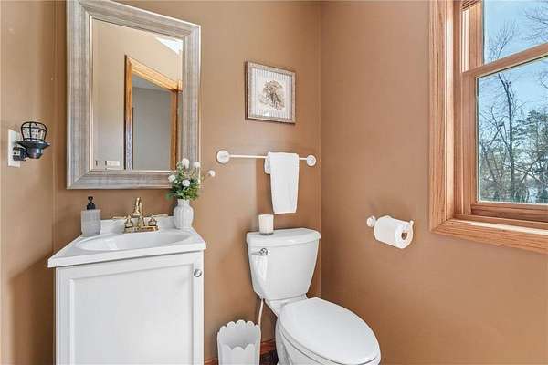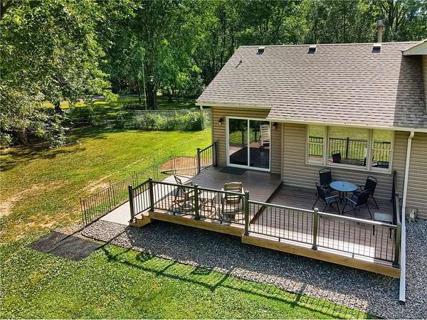 The main level welcomes you with vaulted ceilings and a spacious living and dining area filled with natural light, creating an open and inviting atmosphere. This level walks out to a newer deck perfect for entertaining or relaxing while taking in the serene views. A convenient ¾ bath is also located on the main level. The eat-in kitchen features stainless steel appliances, a center island, and great functionality for everyday living.