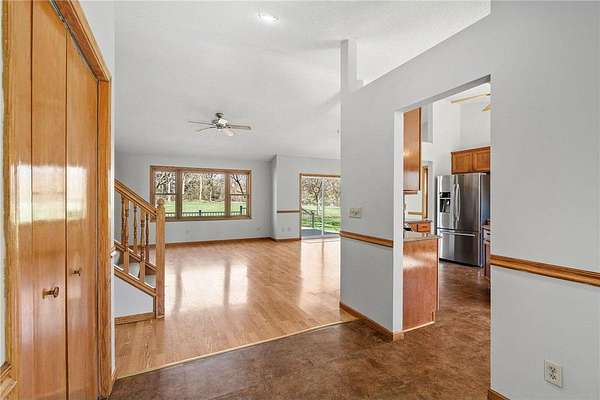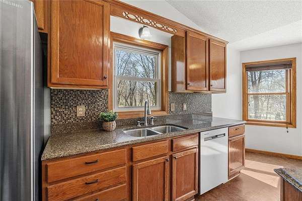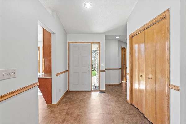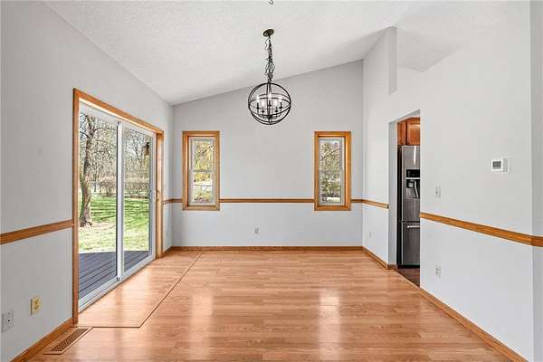 Nestled on just over a private acre in Lindstrom, this beautifully maintained 5-bedroom, 4 bath home offers peaceful living with views overlooking Kroon Lake. Surrounded by mature trees and a fenced yard, the property also features a highly desirable 24x36 pole building, concrete floor with drain, perfect for storage, hobbies, or additional vehicles making this a rare find.