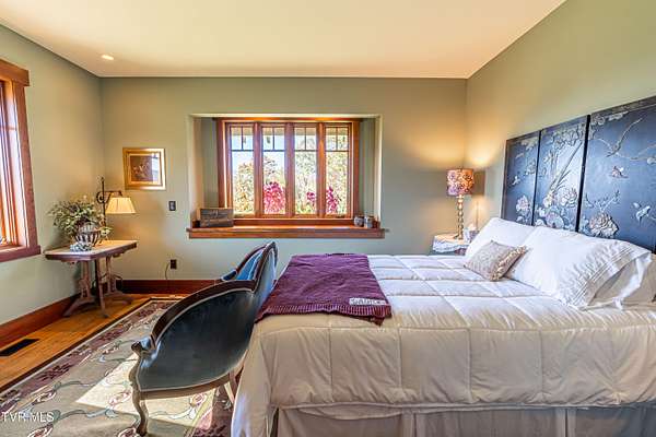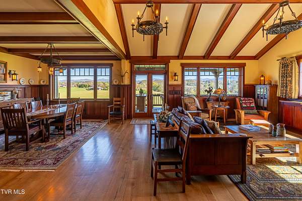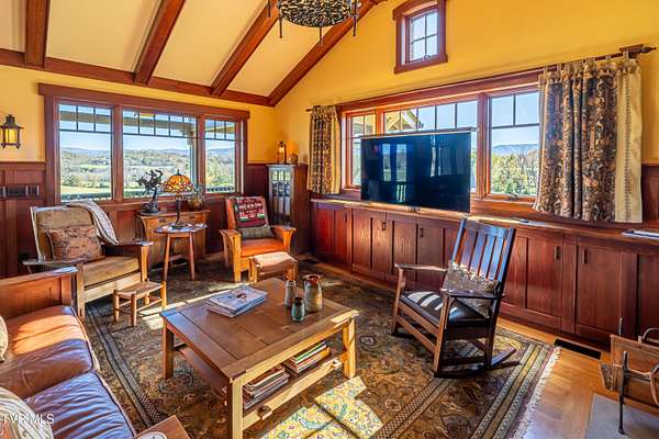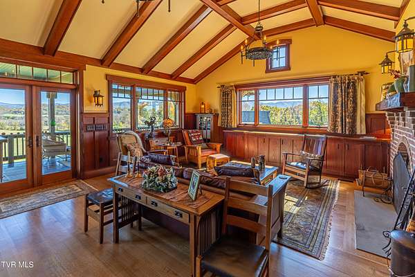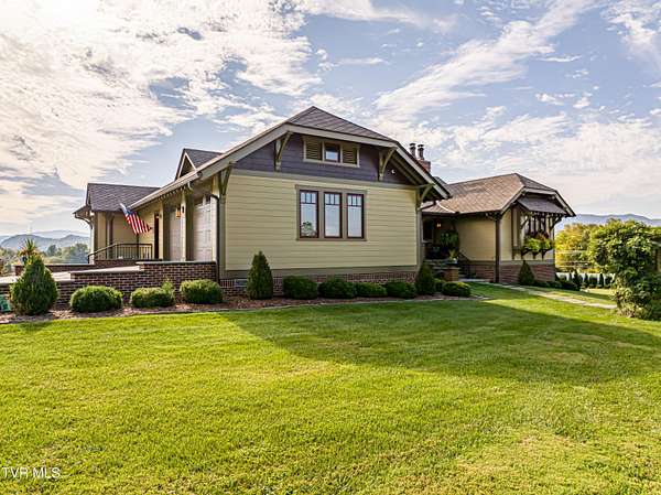 A rare, newly built Arts & Crafts-style bungalow masterfully designed to evoke the warmth and authenticity of a historic Craftsman while delivering modern luxury. Thoughtfully sited on 4.25 acres, the home captures million-dollar, long-range views of the Blue Ridge Mountains, with breathtaking sunrises and sunsets. All 52 windows take in the sun during some point of the year. Inside, the level of craftsmanship is exceptional. Douglas fir trim, beams, and wainscoting, vaulted ceilings with exposed fir beams, and wide-plank white oak floors create a rich, timeless interior, as well as the custom-made Tudor oak front door. Hand-peened copper light fixtures, custom and artisan-made, add warmth and character throughout. Polished nickel plumbing fixtures provide a refined counterpoint to the natural materials. The chef's kitchen is anchored by Thermador appliances and flows seamlessly into the main living spaces, extending outdoors to an almost 400 sq. ft. screened porch that dramatically expands the entertaining area while framing panoramic mountain views. Beneath the porch, a lower patio offers additional outdoor living space and the opportunity for a future outdoor kitchen. The primary suite is a private retreat featuring generous walk-in closets and a spa-inspired bath with a walk-in shower & extra-long soaking tub. The lower level is finished with Pennsylvania bluestone flooring and includes a second kitchen & laundry, making it ideal for an in-law suite, guest quarters, or multigenerational living. A separate workshop with office, full bath, and laundry hookup offers exceptional flexibility and could easily be converted into a guesthouse or private studio. An oversized garage with sink and cabinetry adds convenience and storage in the main house. Every element of this home has been intentionally curated to create a soulful, enduring residence - where classic Arts & Crafts design, modern luxury, and extraordinary Blue Ridge views come together in a truly special offering. ''Other Sq Ft Living'' sq footage of 1480 is the workshop/greenhouse/guesthouse. Ask your agent for a copy of the attached list of curated specifications. Information is deemed reliable but not guaranteed. Buyers/Buyer's Agent to confirm. Owners/Agents