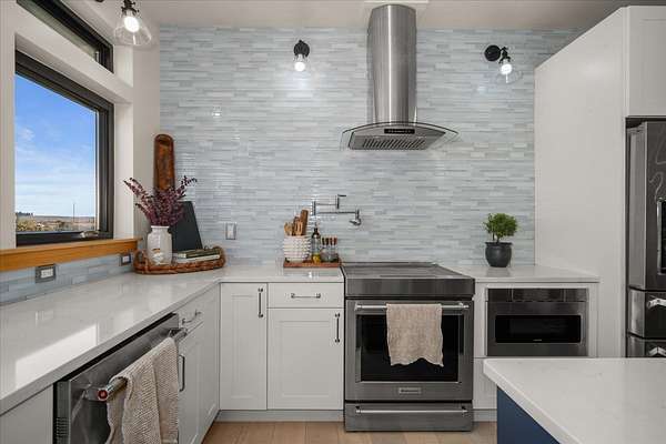 - Dishwasher, Disposal, Dryer, Free-Standing Range, Hard Surface Counters, Microwave, Refrigerator, Washer