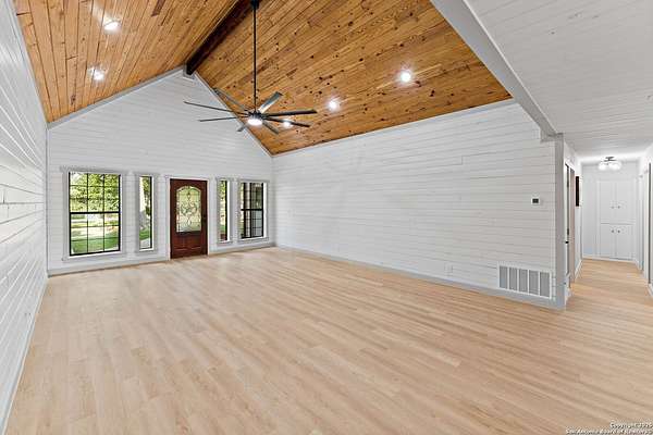 Welcome to 28121 Timberline Dr, where laid-back Hill Country charm meets elevated living in Timberwood Park. This stunning, fully renovated home sits on nearly 3 private acres, surrounded by mature oak trees and lush landscaping in one of the most desirable communities in the area. Timberwood Park is known for its peaceful, deer-friendly surroundings, scenic views, and top-rated schools yet it's just minutes from Hwy 281 and San Antonio attractions. This home is more than just a place to live; it's a gathering space designed for connection. Thoughtfully renovated and meticulously maintained, the interior boasts soaring ceilings with exposed wood beams, new LVP floors, custom cabinetry, and exquisite finishes throughout. The open-concept layout is flooded with natural light and includes multiple living and dining areas, creating an effortless flow perfect for entertaining or everyday moments. The kitchen is a true showstopper, featuring quartz countertops, a sleek backsplash, and fresh paint throughout. The spacious primary suite is a private retreat, complete with a sitting room for moments of relaxation. A guest suite provides a welcoming space for visitors, while flexible rooms can be tailored to suit your hobbies or work-from-home needs. The sun-soaked Florida room offers the perfect spot to unwind or entertain. Step outside to discover two expansive back patios and a backyard designed for making memories. Mature trees provide shade and privacy, while the covered patios are ideal for enjoying quiet evenings or hosting weekend gatherings. With no back neighbors and the entire property fully fenced, you'll enjoy ultimate privacy, with the added peace of a metal roof for durability. Whether you're hosting intimate dinners, weekend parties, or simply enjoying a quiet morning coffee, this home offers the perfect backdrop for life's most meaningful moments. And with an appraisal at $655K, you'll walk into over $56K in instant equity. Don't miss this rare opportunity to own a slice of Timberwood Park living!