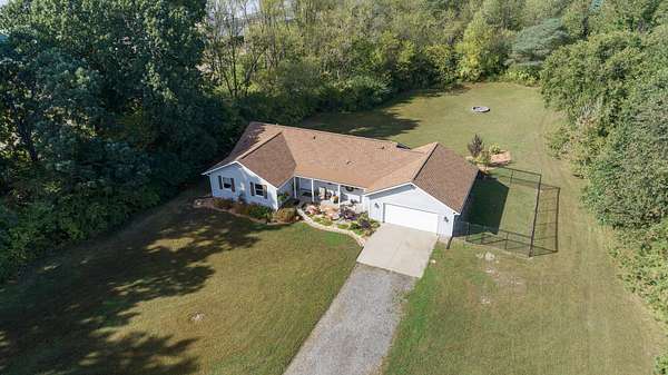 Tucked away in a serene setting just minutes from town, this well-maintained walkout ranch offers the perfect blend of privacy and convenience. Nestled on 6.7 groomed acres with approximately 1 mile of winding walking trails, the property is ideal for nature lovers, outdoor enthusiasts, or anyone seeking space to roam. Inside, you'll love the open-concept floor plan with spacious living areas, large windows for natural light, and seamless flow between the kitchen, dining, and living spaces - perfect for entertaining or cozy nights in. The walkout lower level offers additional living space, bedrooms, or flex rooms to fit your needs. Enjoy morning coffee on the deck overlooking your private slice of Michigan countryside, or take an evening stroll along your own trails. Whether you're looking for peace and quiet or room to play, this one checks all the boxes!