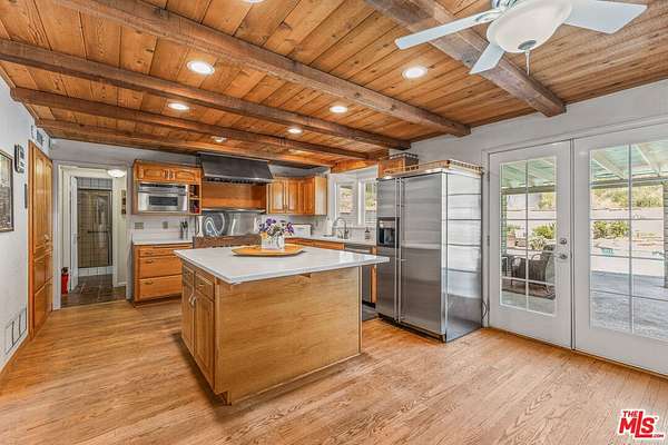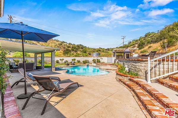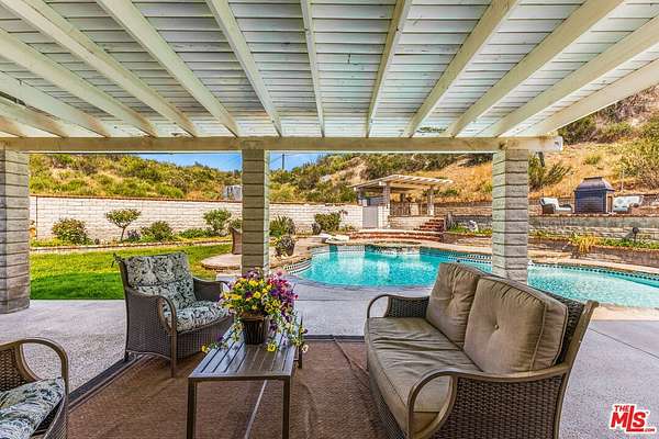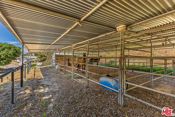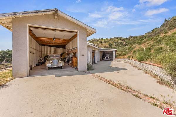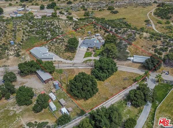 Nestled in the highly sought-after Sand Canyon area of Santa Clarita, this private ~2.5-acre retreat offers an exceptional blend of rural charm and modern comfort. The property features a resort-style pool and an impressive 2,200+ sq. ft. detached multi-car garage/shop, ideal for a variety of uses. Designed with versatility in mind, this equestrian-friendly estate is located just moments from Sand Canyon Country Club and miles of scenic riding and hiking trails, making it perfect for those seeking space, privacy, and an active outdoor lifestyle. Set on expansive grounds with thoughtfully designed equestrian facilities, the property features covered horse stalls, hay storage, and a tack room. A fenced ~3/4-acre parcel of open land further enhances the property's versatility ideal for equestrian use, grazing, or future improvements. This generous space provides ample room for horses to roam while offering flexibility for possible additional facilities, recreation, or customization to suit a variety of needs. The 2,684 sq. ft. home offers 4 bedrooms and 3 bathrooms, thoughtfully designed with both functionality and character in mind. Inside, you'll find soaring wood-beamed ceilings in the living and family rooms, each anchored by its own wood-burning fireplace, creating a warm and inviting atmosphere. The spacious kitchen is built for both everyday living and entertaining, complete with a large center island and a professional-grade 4-burner stainless steel stove with double oven, grill and griddle. Adjacent to the kitchen is a spacious downstairs bedroom and a hall bath with shower. Primary suite serves as a relaxing retreat with dual vanities and ample space. Additional highlights include a full laundry room downstairs and a convenient stackable laundry setup upstairs. Step outside to your private backyard oasis featuring an in-ground pool and spa, along with a covered outdoor kitchen/entertainment area complete with a stainless steel BBQ perfect for hosting gatherings year-round. Car enthusiasts, hobbyists, and those in need of extra storage will appreciate the impressive (approx) 2,284 sq/ft. detached garage/shop with RV storage, offering endless possibilities. Combining equestrian amenities, spacious living, and resort-style outdoor features, this rare Sand Canyon property delivers the best of country living with close proximity to all the conveniences of Santa Clarita.