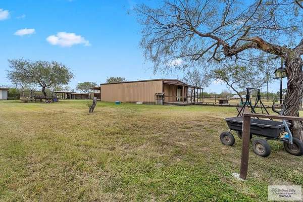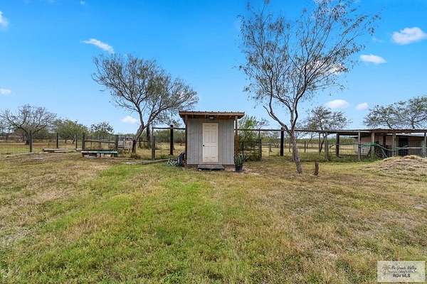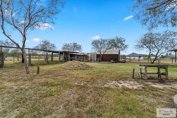 Welcome to a true South Texas ranch-style opportunity. Customize this barndominium. Set on 6.77 wide-open acres, this property offers the space, privacy, and freedom ideal for a country lifestyle. Well equipped for equestrian use or farming, the land includes horse stables and a chicken coop with a solid block structure featuring nesting boxes, a long roosting area, and a small window providing access to an enclosed outdoor run. A separate door with black mesh was previously used as a secure nighttime shelter for ducks, and electrical extensions are in place for lighting and heat lamps. Additional outbuildings include a brown storage shed (approx. 16x20), a yellow shed (approx. 10x12), a small tool shed behind it (approx. 6x10), and a separate feed shed near the fenced garden area (approx. 8x10) with electricity. With ample room for livestock, barns, workshops, or future improvements, this property offers peaceful rural living while remaining conveniently close to Harlingen amenities.