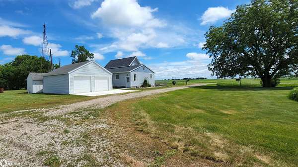 Neat as a pin acreage on quarter mile of gravel near Garner. Custom built cabinets in large kitchen/dining. Large master bedroom with owner bath with jetted tub. Living/formal dining area includes fireplace and good space. Lower level has a bonus room, and half bath. Several nice outbuildings and older grain bin. Detached double garage. 50'x136'x16' steel building with shop area.