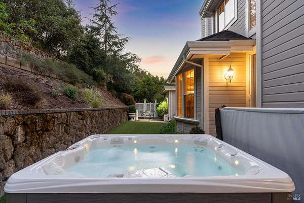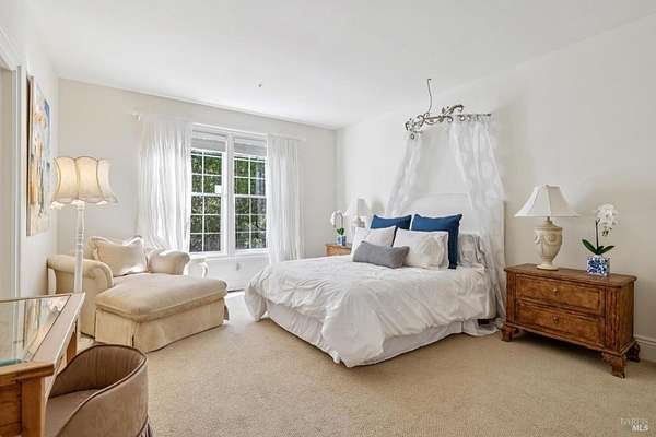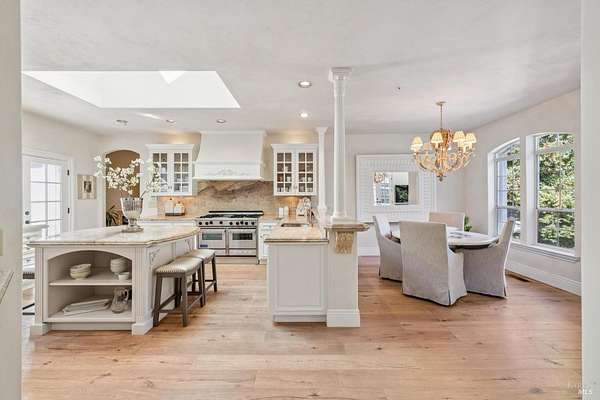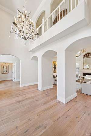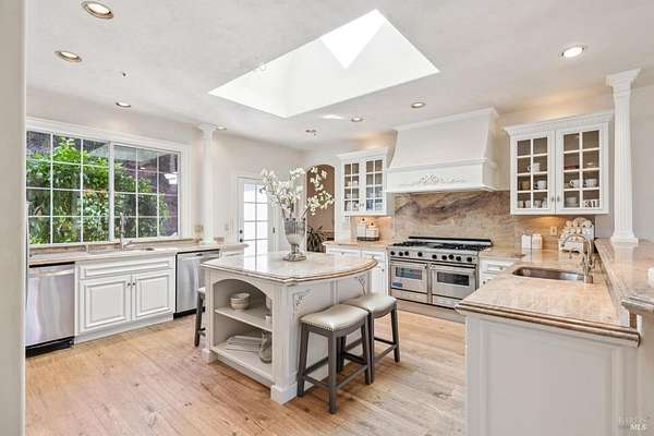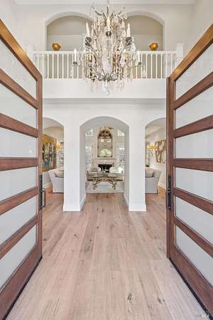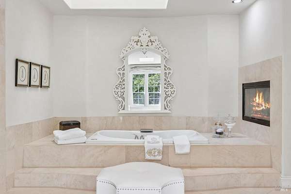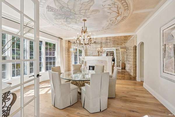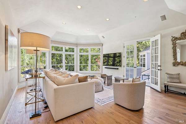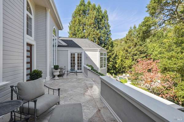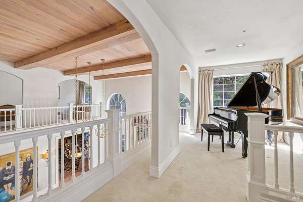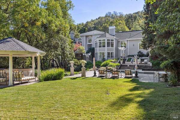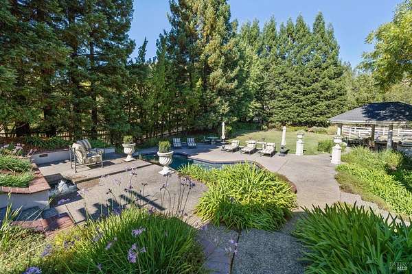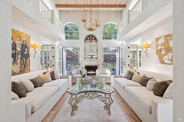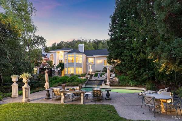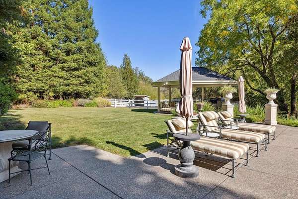 Located on coveted Vineyard Road, this gated 2.1 acre estate combines privacy, refined design, resort-style living, and equestrian amenities in one of Marin's premier settings. Designed by Martin Kobus and extensively renovated, the expansive 6,415 sq. ft. residence features DuChteau wide-plank wood floors, integral plaster walls, soaring ceilings, and abundant natural light. A dramatic double-height living room anchors the home, complemented by a state-of-the-art theater, custom chef's kitchen and wet bar open to the family room, elegant dining room, home office, four fireplaces, and multiple French doors opening to the outdoors. The main-level primary suite includes a spa-like limestone and Calacatta marble bath with Hansgrohe fixtures. Each of the guest bedrooms enjoys its own bath. Outdoors, the property unfolds like a private retreat - pool, fountains, BBQ gazebo, level lawns, travertine terrace, hot tub, basketball half court, and direct trail access for hiking and horseback riding. The lighted corral and stall/tack area will delight equestrians. Modern amenities include a newer roof, dual-zone heat/AC, generators, security system, and 3-car garage. Experience an elevated lifestyle connected to nature and community in this exquisite equestrian estate.