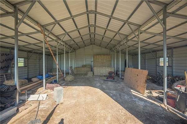 Equestrians, Your Dream Haven Awaits: 53-acre horse ranch adorned with over 12,000 feet of premium pipe fencing. This stunning property boasts a charming 1,717 sqft home built in 1915, featuring a wood-burning fireplace, 3 bedrooms and 1 bathroom. The main level presents two cozy bedrooms, a full bathroom, a formal dining room, and a spacious kitchen. The second floor houses the generously-sized third bedroom with its large closet, a second living area or office. Experience peace of mind with the home's HVAC system, complete with a UV anti-microbial light for optimal air quality. On the West side of the property you will find a custom Hostetler steel-built and insulated 6-stall barn built in 2024. Featuring 12x12 priefert stalls, the four West stalls offer Dutch doors eagerly awaiting your personalized touch for custom runs. Offering both luxury and functionality, each stall has a fan that runs off a switch. No more plugging in your fans here. LED lighting on a timer and two large fans over the center isle. You will also find a thoughtfully designed 12'x12' wash rack pre-wired for an on-demand hot water system (system is there just not installed) A large 12x12 tack/feed room with extra wide doors, simplifying the task of transporting saddles or grain. While enjoying the remarkable 15+ feet high side walls, offering abundant space for covered trailer parking with a convenient 14 feet of clearance and 50amp RV plug. Additional covered parking and a versatile 35x48 hay and equipment barn with 3 garage doors on the south side offer practical solutions for your farming needs. Efficiently manage your land with 5 fully-fenced pastures, all secured by top-notch pipe fencing. Two run-in sheds provide further convenience - one 12x36 with 3 pipe runs and another open run-in shed. The entire ranch is serviced by an antimicrobial-filtrated water well, ensuring your horses' health and hydration. RURAL WATER AVAILABLE AT ROAD.
