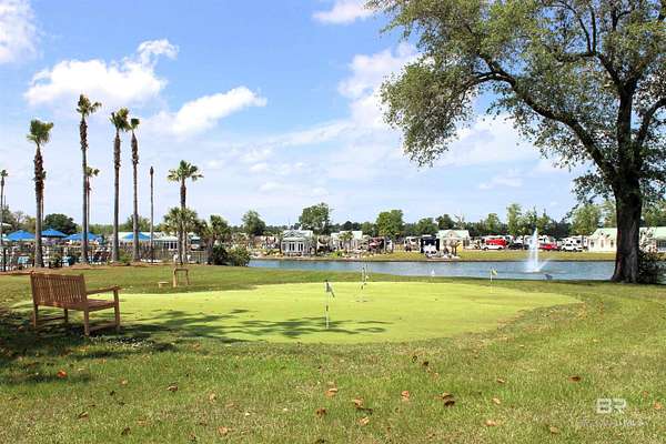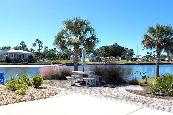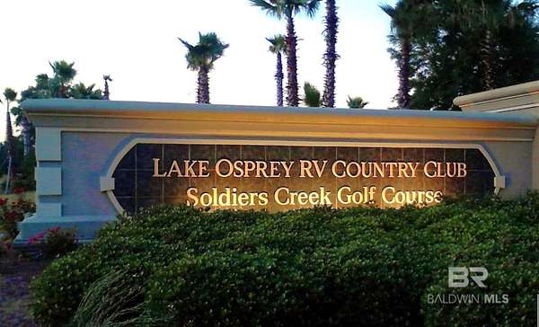 Lake Osprey RV Resort Lot #110 is a prime luxury RV opportunity on the Alabama Gulf Coast! Discover one of the best resort living communities in south Alabama with Lot #110, a versatile LAKEFRONT property perfect for full-time RV living, a vacation retreat, or income generation through the on-site management program. This beautifully improved lot features a 16' x 75' concrete pad with 30/50-amp full-service pedestals, underground utilities ready for a future coach home, and a lakefront patio area complete with colorful seating and a cozy fire pit with gorgeous lake views. The extended patio is finished with pavers and surrounded by lush, flowering landscaping, creating a relaxing outdoor oasis.HOA fees are $320 per month and include premium amenities such as cable TV, high-speed internet, water, trash, sewer, lawn care, and access to all resort facilities. Owners also have the option to build a custom coach home up to 1,200 sq. ft., following community architectural guidelines. Located in beautiful Baldwin County, east side of Elberta, AL, ownership includes access to an impressive 1,700 sq. ft. fitness center, a zero-entry infinity pool and hot tub overlooking an 11-acre terraced lake, a poolside Tiki bar with gas grills, and three pickleball courts. The resort hosts a full calendar of activities, parties, and special events, offering an active and friendly lifestyle year-round. Just a short stroll away is the Soldiers Creek Championship 18-hole golf course and driving range, making this the perfect destination for recreation, relaxation or your homebase community! Buyer to verify all information during due diligence.