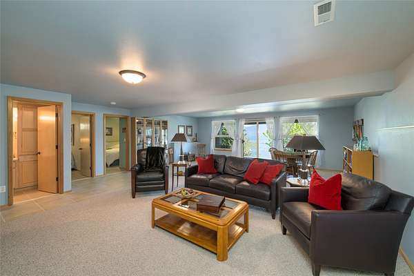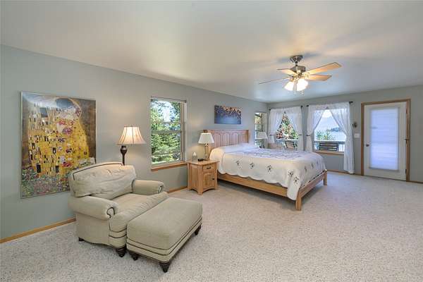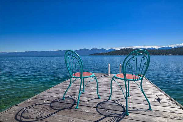 Magnificent Flathead Lake waterfront estate on 3.25 acres with 123 lineal feet of shoreline. This property showcases a fantastic view across Indian Bay to the Mission Mountains. Incredible privacy is yours on this unique property. New steps to dock installed, and ATV/walking trail easy access road added in 2025. The home has 4 bedrooms, 4 full baths, attached finished heated garage, adorable furnished guesthouse with 2 bedrooms and bath, plus a heated insulated shop for boat storage and all your toys. Boathouse with rail system, covered, motorized lift for pontoon boat, and nice dock. This low maintenance stucco home, with wrap-around deck on main level, private deck off the upper master bedroom, tiled patio on walk-out lower level, is tucked in the trees with lots of privacy. There is a also a primary suite on the main level. Custom kitchen cabinets with granite counters, convenient to garage and laundry. Expansive floor to ceiling living room windows frame stunning views of the lake and Mission Mountains to the east. The fireplace features an artistic mosaic of Flathead Lake. Landscaped, UG sprinklers and Flathead Lake irrigation.