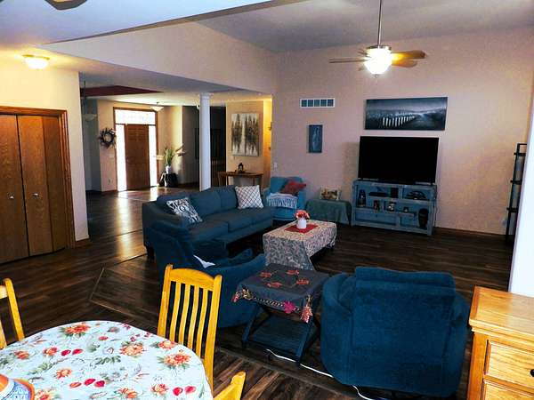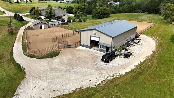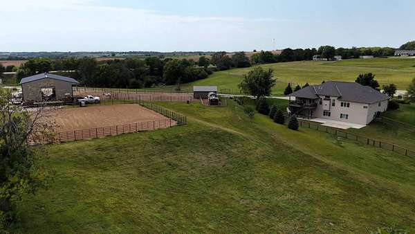 You've found the perfect equestrian haven and hobby farm right here in SW Iowa! This property really has it all. Two parcels included in this sale, with land totally 10.53 acres, M/L. With 4,200 sf of finished interior living space, M/L, this beautiful single story home provides the comforts of modern living boasting a large great room: including spacious kitchen, dining area, living area with fireplace, as well as small open office space. Covered back deck, just off the dining area, adds more informal dining or early morning coffee retreat to watch the sunrise. Main floor laundry room located next to your 3 car garage entrance provides the ease of shedding dirty garments before heading into the great room. You don't want to miss the the Master Retreat, which allows views of your back yard and horse barn. Large walk-in closet, ensuite bath with separate toilet, separate jetted tub and walk-in shower, dual sinks and an abundance of storage! Rounding out the main floor is a separate hallway leading to 2 good sized bedrooms and full bathroom. But wait there more. Main floor provides open access to the basement which is another finished retreat! Kitchen, living room, 2nd Master Suite, an additional good sized bedroom and 3/4 bath, as well as 2nd laundry hook-ups. Living area allows direct outdoor access to another open patio. The 3 Car Garage is hardwired for a generator and has TV cable. Now for the outside! On the House Parcel, there is 4.19 acres, M/L. Electrical, Propane, Septic, and private Well, 100x80 groomed outdoor Riding Ring, 2 Horse Barns, 2 chicken coops, small storage Shed and fruit trees. Nearest to the riding ring is the largest of the horse barns, which boasts electrical, Metal fencing, cement floor, 5 stalls, hay loft and office space. This barn is currently set up to house both large working horses and mini horses. The smaller of the barns is a birthing barn with cement floor, 2 stalls and storage space. Two chicken coops with electric fencing, small garden add to the start of a hobby farm. In the SE corner of this lot is small storage shed. Near this shed, there is potential to create access to highway 2. The second parcel has 6.34 acres, M/L. Has established electric only and potential for additional building. Wild Plum trees can be found on south side of this parcel. This parcel has been improved with electric fencing and cross fencing and links to the House parcel with metal fencing and gates to allow grazing horses to return to their stalls. Property is close to Waubonsie Equestrian trails, Sidney Rodeo, and Battle of the Bulls. There are several local large animal veterinarians and Hay providers. So much to offer for the Horse lover and potential to build on the idea of creating the perfect Hobby Farm. All this, with direct hard surface access, modern conveniences and no covenants!