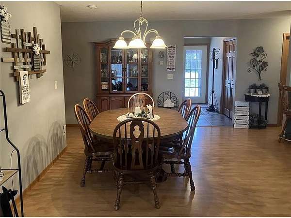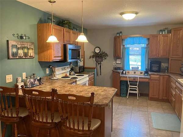 Welcome to this spacious 3200 square foot home perfectly situated on the edge of town on a large 1.9 acre lot. One mile from city beach on very desirable Lake Minnewaska and 3 miles from Minnewaska Area Schools. Main floor is open floor plan with updated kitchen cabinets, countertops, flooring and spacious wrap around deck. Main level has large living room, 3 bedrooms, upstairs laundry and full bathroom. Walkout basement was recently licensed for daycare and has its own separate lower level kitchen, 1/2 bath and large fully finished living and play spaces with new flooring. Additional flexible space could be a craft or game room and newly added window well for future bedroom or office. Private backyard is fenced with large playset and two storage sheds. New in 2025 High Efficiency Multi Stage Furnace and new 40 Gal Natural Gas HE Powervent Water Heater. Home also has a natural gas fireplace, central air conditioning, owned water softener, drain tile system, sump pump and large 3 stall garage with extra space. So many options for this home for a family or daycare business. Make it your next home and start enjoying the perfect blend of location and indoor and outdoor ample spaces!