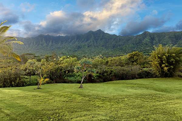 Rare Offering of 24 Acres with expansive, useable and flat land at the base of Halelea forest reserve. Mt. Namhana mountain range, standing 2,700 feet high is the immediate focal point, bringing a vibrant stillness and intimacy to the land. Being on this property means experiencing the mountains up close, revealing their hidden details in the soft light of sunrise and with the dramatic colors of sunset-details you might miss from a greater distance. The stream flows year-round, wrapping gently around the edge of the property like a silken ribbon. Its cascading waters tumble over natural rock waterfalls, creating pristine, large crystal-clear swimming holes. For safety, privacy, and aesthetics, the electric gate, palm tree-lined entrance, and concrete road leading to the property are already in place. Perfect for those seeking peace and tranquility, this property provides the ultimate sanctuary for a low-profile island lifestyle-ideal for discerning buyers who value privacy, unrivaled beauty, and the freedom to enjoy the land. Whether you dream of creating a country estate, food forest, ranch, or botanical haven, this land offers endless possibilities and is a legacy property for future generations. *Entitlements for one home as well as several agriculture buildings, etc. * The adjacent parcel of 40 acres is also available for purchase, see more details and video with MLS #719312. *Above VIDEO is of both TMK's (40 acres + 24 acres = 64 Acres) 4-5-2-22-25-3 (24 Acres @ $4,500,000). 4-5-2-22-25-5 (40 Acres @ $8,500,000).
