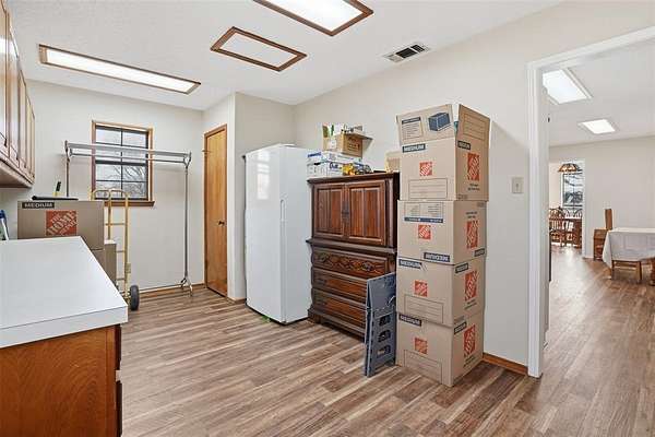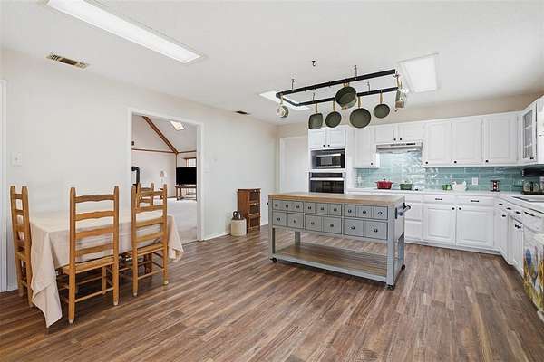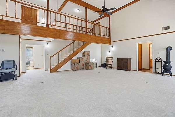 Nestled on 8.11 wooded acres in a peaceful rural setting, this 3,224 sq ft, two-story home at 2818 Ward Mountain Rd offers space, character, and opportunity. Built in 1992, the home features a stunning, oversized country kitchen with freshly updated white cabinetry, modern appliances, a large center island, wood-burning stove, and bright tile backsplash--perfect for gathering and entertaining. The expansive living room boasts soaring ceilings, abundant natural light, and a striking catwalk overlook with classic oak railing. Three generously sized bedrooms include walk-in closets, complemented by three full baths, a sunroom, and a large laundry room with ample storage. While some finishes retain their 90s charm, thoughtful updates enhance functionality. The heavily treed acreage includes two stock tanks, offering privacy and a true Texas countryside feel. An additional 11.631 acres are available for purchase.