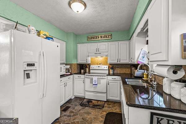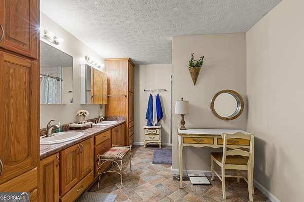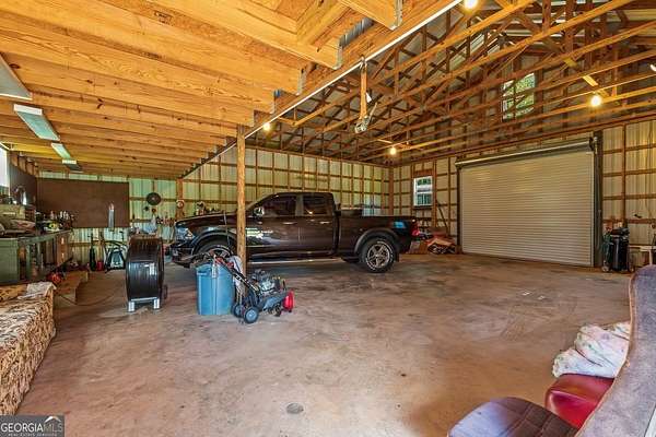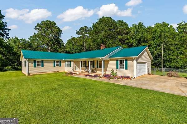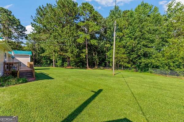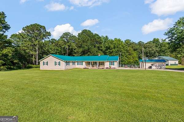 Amazing private estate offering a beautiful lawn with pecan and fruit trees and impeccable landscaping too. This home, all on one level, is the perfect size with so many extras. Enjoy the huge family room perfect for large family and friend gatherings or holidays. The kitchen boasts a wonderful view of the back yard with a huge walk-in laundry room with storage to be envied by everyone. A large master suite with a cedar walk-in closet, shower and soaking tub and double vanities. Two large secondary bedrooms and bath with a possible forth bedroom if needed. A Huge safe room (10'x12' full concrete safe room with vault door) and storage throughout. The third bathroom is in the attached garage perfect for after yard or shop work. The back deck of the home is a gateway to your 10 acres of lush hardwoods providing the perfect playground for the nature enthusiasts! The property boasts a 40'x50' shop with a huge walk up loft, electricity, plumbed for water, 12'x24' detached garage in addition to attached double garage, 10'x40' pole barn and firewood shed. This home can be your escape to peaceful country living and still very close to every convenience. This property is right over the Meriwether county line. Kitchen, Living room and front room built in 1980's (county records are incorrect), remodeled and added on in 2012.