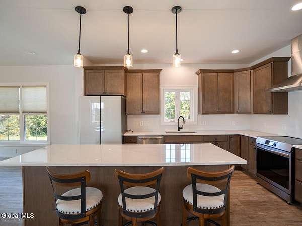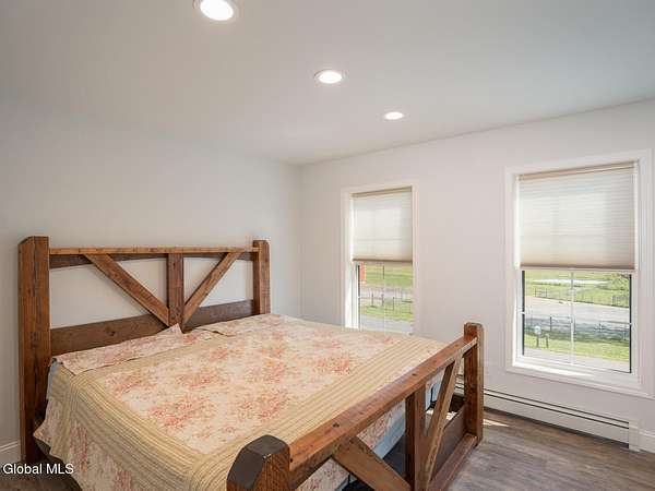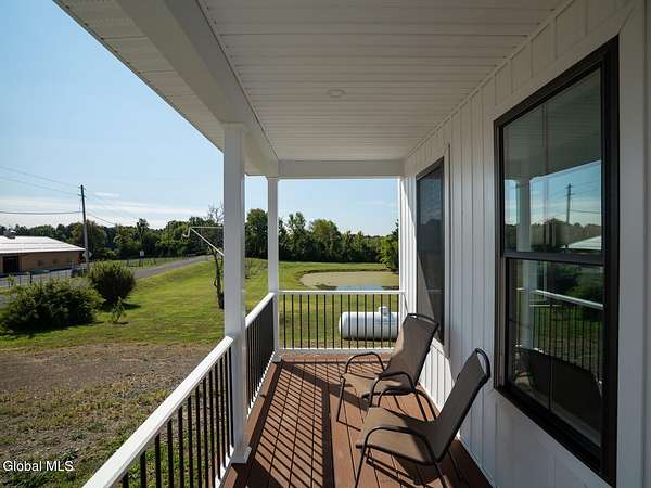 Beautiful 2024 Colonial Farmhouse sitting on 4.3 acres with pond. Enjoy time spent on the full front Trex porch with spectacular Catskill Mountain views to enjoy year round. From the porch enter through the oversized French doors to the wide laminate flooring throughout and full open concept. Kitchen features 6 ft island, Blanco farm sink and plenty of room to cook and host parties. Formal dining room off kitchen. Quartz and Corian in kitchen and baths, custom black on white windows. Side door to enter from garage side with mudroom area and 1/2 bath. Upstairs boasts 3 bedrooms, open study (could be 4th bedroom), 2 full baths and a separate laundry room. 27 x 40' basement is just waiting to be finished. Radiant heat in basement - French doors and large glass windows make this a true walk out. Morton Barn is 30x60' with 12 x 18' and 10 x 10' door entry on side and end, 100 amp electric. Close to Kinderhook, Hudson and just 4 miles to i90 Exit 12. Home can be purchased with 108 acre farm with stables, ranch style home, 2 ponds and more. Call Karen for more information. -.