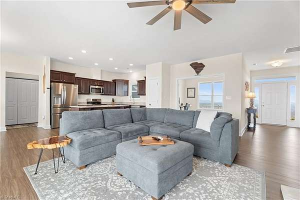 Est $2,923/moLike-new 3BR/2BA home on 3+ acres with a 2-car garage and breathtaking long-range views of Pilot Mountain, Sauratown Mountain, and Fancy Gap Mountain! Enjoy relaxing on the welcoming front porch or the covered back porch while taking in the scenery. Inside, the open, functional layout offers comfortable everyday living, plus a main-level office with French doors, perfect for working from home or as a flex space. The unfinished basement provides excellent potential for future expansion, workshop space, or storage. A rare opportunity to own a move-in-ready home with acreage and incredible views in beautiful Pilot Mountain!