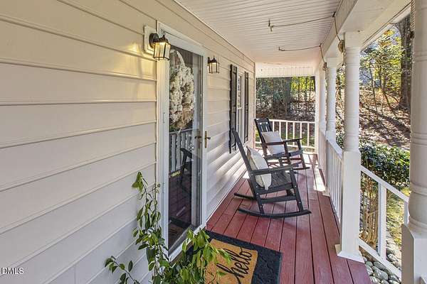 Tucked away on a quiet cul-de-sac, this charming 1,528 sq ft home invites you to slow down and settle in. Nestled on a private 2.39-acre wooded lot with no HOA, it offers the rare combination of peaceful country living and everyday convenience - just minutes from town. The sweet wraparound front porch sets the tone, welcoming you home and creating the perfect spot to enjoy your morning coffee or unwind in the evenings. Inside, a traditional floorplan features a formal dining room, living area, and kitchen on the main level, with three comfortable bedrooms tucked upstairs. Recent updates, including a newer roof and HVAC, provide added peace of mind. Step outside to soak in the serene surroundings from the deck, gather with friends around the fire pit, or imagine the many ways this special property can grow with you. With plenty of space and endless possibilities, it truly feels like a personal retreat. Enjoy the quiet of the countryside without sacrificing accessibility - just 4.5 miles to downtown Fuquay and 12 miles to Lillington. Charming, private, and ideally located, this is a place you'll be happy to call home.