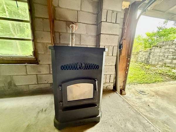 - Forced Air, Oil, Pellet Stove, Wood, Wood Stove