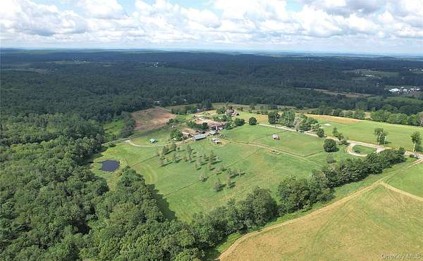 A unique and magnificent opportunity is now available for its next chapter. This 19+ acre property is perfectly positioned for many ventures on a rural corner in the heart of Bethel, NY. The desirable location is agriculturally zoned and was formerly a state-of the art equestrian facility, allowing endless possibilities with numerous outbuildings, pastures and infrastructure. Main house is a duplex with beautifully appointed interiors that can easily be converted into a single family or a multi-generational living space since they are conveniently connected. Each unit offers 3 BR's, open floor plan, washer and dryer. The larger apartment offers 2 full baths, a large entry and a covered porch overlooking the beautiful meadows and pond. Manufactured ranch home is a plus and perfect for rental or caretaker quarters. Main barn houses 10 stalls, tack room, feed room, wash bay (hot and cold water), restroom and utility room for residence above. Three additional Amish-built barns offer 8 more stalls and are scattered throughout the open acres of property. Picturesque setting with pond, stream and trails through the wooded areas is simply magical. Plenty of storage with several other outbuildings including a 4-bay garage and barn with mini-stalls as well as a run-in shed and two open arenas. Property fronts on two roads offering development potential as well as high visibility. Minutes from Bethel Woods Center for the Arts (1969 Woodstock site), Sullivan Catskills lakes, farms, hiking, skiing, craft breweries, distilleries, shops, casino, water park, and more. Only 90 miles to NYC! This is a canvas for a dream lifestyle and business in a historically rich region.