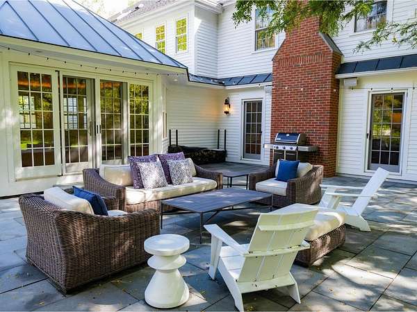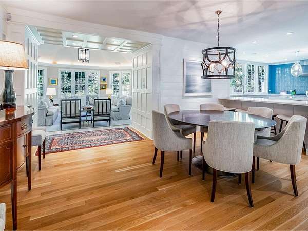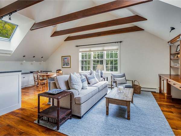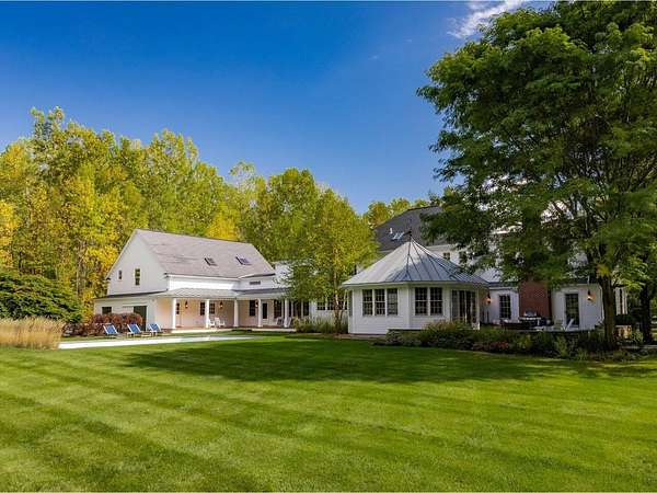 Step inside this timeless 6,000+ SF home where classic New England architecture meets modern comfort. With 5 bedrooms and 5+ baths, the layout offers both elegant gathering spaces and private retreats. The grand foyer with slate floors and sunlight-filled staircase opens to a cozy den, paneled office, and a chef's kitchen with oversized island, Wolf range, and seamless flow into the dining area, living room with fireplace, and spectacular octagon sunroom wrapped in windows. Upstairs, a serene primary suite offers dual walk-in closets and a spa-worthy bath with double vanity, soaking tub, and glass shower. A guest suite includes a private 3/4 bath, while two additional bedrooms share a remodeled bath with steam shower and thoughtful finishes. A first-floor hallway, lined with windows, connects to a laundry room and dual workstations. Two mudrooms and a private apartment above the garage add versatility, complete with its own kitchen, living space, bath, and back entrance. Set on 4.2 landscaped acres with bluestone patio, heated pool, covered porch, and pond, this home offers a rare blend of refinement and livability in a truly exceptional setting.