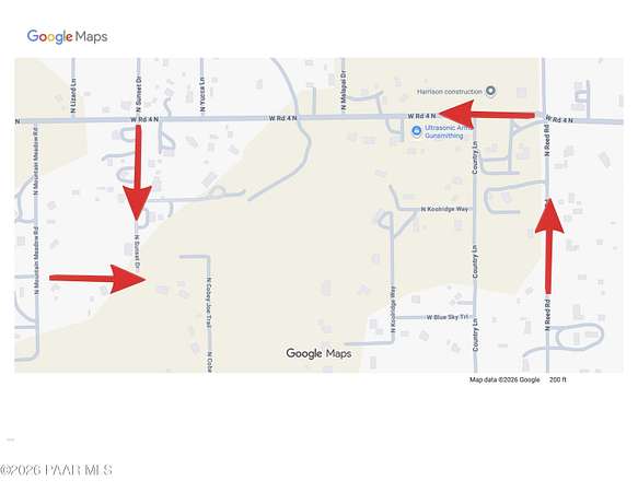 From Highway 89N turn Left at Outer Loop Rd traffic circle, go 1.6 miles & Right on Reed Rd. Turn Left on W Rd 4N, go about half a mile to a Left on Sunset Dr. Driveway will be on left hand side at the end of Sunset. Go through the wash.