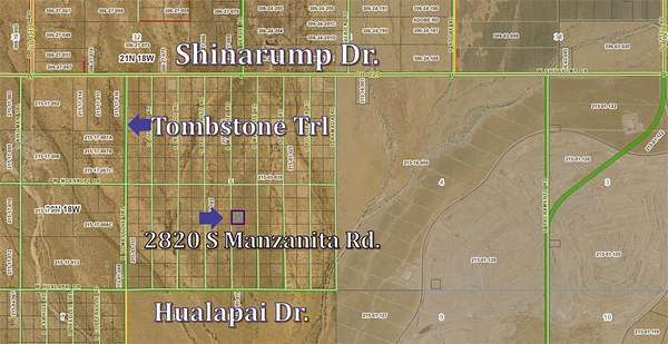 Shinarump to Tombstone, go south to Hualapai, east to Manzanita, north to lot. Map in photos. Use caution on dirt roads.