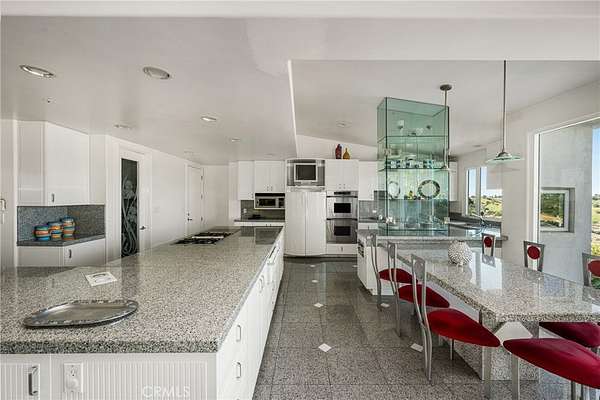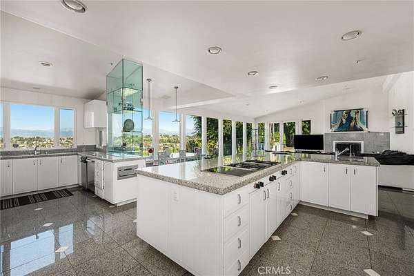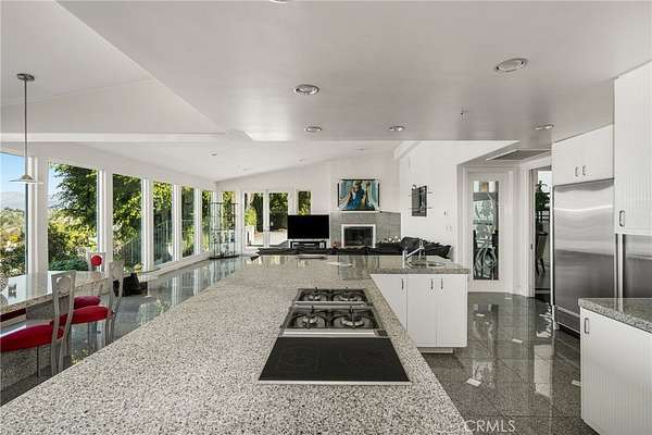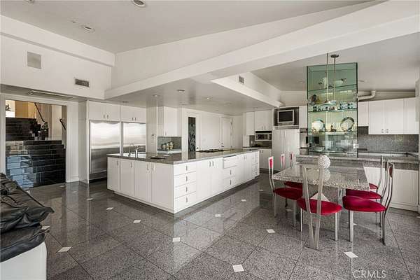 Designed for both grand-scale entertaining and everyday living, the residence offers formal living and dining rooms along with multiple family rooms that flow effortlessly to the outdoors. The chef's kitchen is thoughtfully appointed with a large center island, white lacquer cabinetry, granite countertops, Sub-Zero refrigerator and freezer, Gaggenau fryer, charcoal grill and cooktop with downdraft vent, Dacor double ovens, NuTone built-in food center, breakfast nook, and a generous walk-in pantry.
