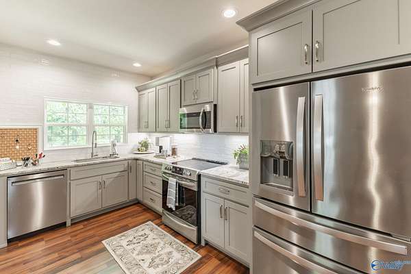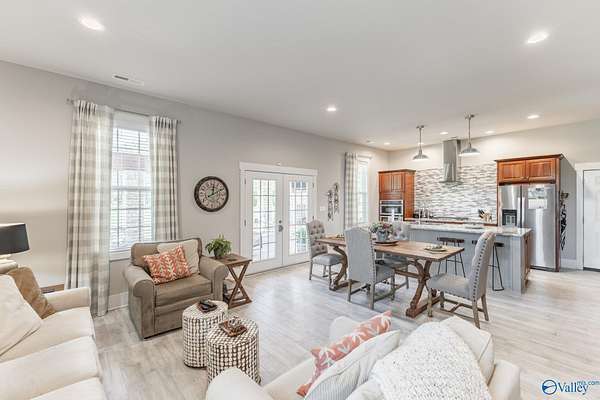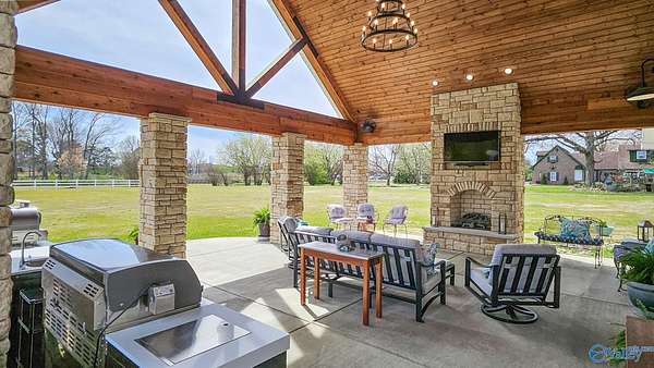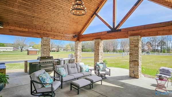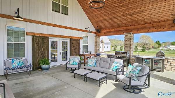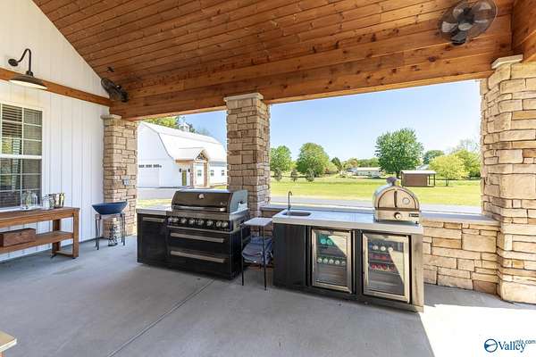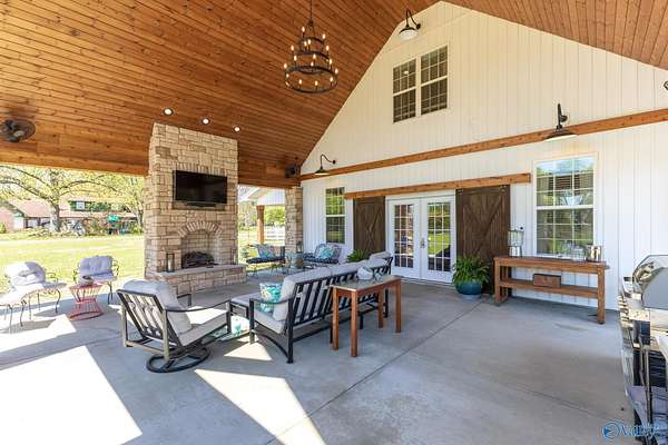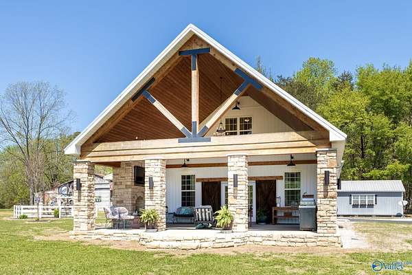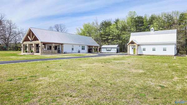 This property offers exceptional versatility & an array of amenities. 2 DWELLINGS. Home is 1852 sq. ft., and Guest House is 1781 sq. ft. The main cottage welcomes you with an expansive covered porch featuring an outdoor kitchen, gas fireplace & tv. The open kitchen & family room showcase custom cabinetry and impressive walk-in pantry. Secluded primary suite includes a boutique-style closet with pull down bars. Upstairs, two additional bedrooms and bath. Detached guest house is equally impressive. Full kitchen with custom cabinets, bath, and flex area with epoxy floors. Upstairs could be a bedroom & living area. This property is ideal for an event venue or home with separate business.