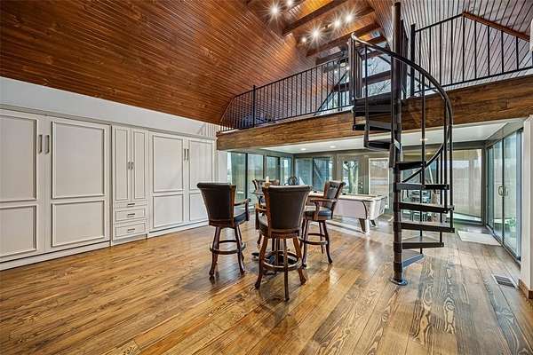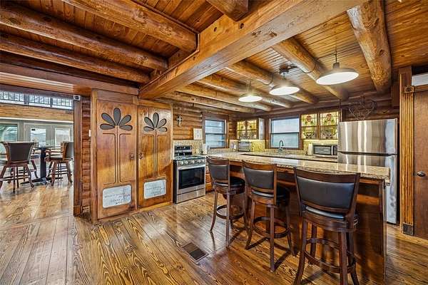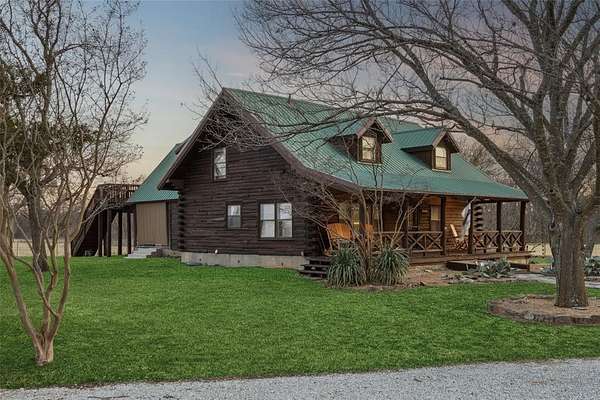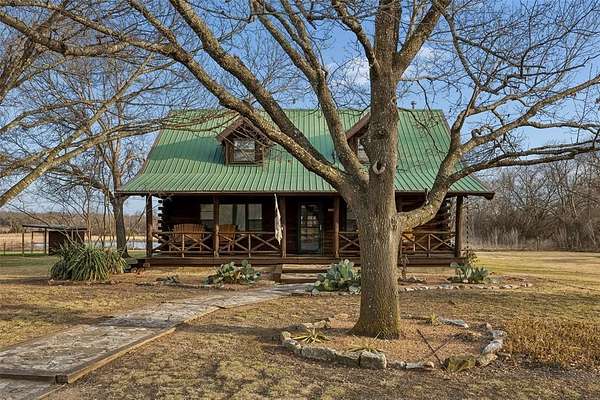 Nestled on a heavily wooded 39.449-acre lot in Wylie, this charming log cabin retreat offers the perfect blend of privacy, character & endless possibilities. An elongated driveway sets the tone as it leads you through the trees to the home, creating a true escape from the everyday while still offering valuable frontage and accessibility for future business or development opportunities. A detached garage or workshop w-a Benpak car lift, built-ins & electricity adds flexibility for hobbies, storage or projects. The remodeled cabin welcomes you w-a huge Texas-sized front porch, ideal for relaxing & taking in the peaceful surroundings. Inside, a grand entry showcases the open floor plan featuring 3 spacious bedrooms + 2 beautifully updated bathrooms. The expansive living room is perfect for unwinding, while the generous dining room easily accommodates a large table & flows seamlessly into the kitchen. Kitchen is well-appointed w-a gas cooktop + oven, dishwasher, granite countertops that extend to the backsplash, an island w-seating + a raised breakfast bar. Just off the kitchen is a massive multipurpose space w-hardwood floors, custom built-ins & planked ceilings, perfect as a second dining area, game room, or bunk-style retreat complete w-2 built-in Murphy beds. A spiral staircase leads to a loft area & opens to a second-story deck, offering elevated views of the property, while walls of windows drench the space in natural light & showcase scenic views of the land. Outdoors, enjoy a large fully stocked pond, an outdoor putting green, open pasture areas, and heavily wooded sections with ample room for expansion, whether you envision additional homes, an event venue, small business operation, or your dream outdoor oasis. Ideally located just minutes from Highway 78 and a short drive to Lake Ray Hubbard, this rare 39.449-acre property offers incredible potential as a private residence, weekend getaway, income-producing Airbnb, or future commercial investment opportunity.