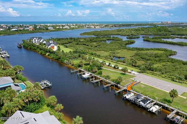 Waterfront and equestrian lifestyle with your own private boat slip. Located in Flagler Beach within the private gated community of Seaside Landings, this seven acre homesite offers privacy, space, and coastal living. Your assigned 25 foot boat slip is just steps away, providing quick access to the Intracoastal Waterway and the scenic Matanzas River for cruising and fishing. Design and build your custom home with room for a stable, a riding arena, gardens, and additional outbuildings, subject to approvals. The setting is framed by the natural beauty of Bulow Creek State Park along picturesque John Anderson Highway. A short drive places you in the heart of Flagler Beach with miles of sandy shoreline, oceanfront parks, local shops, and relaxed coastal dining. Waterfront dining along the Intracoastal is close by, as are multiple golf courses, parks, and trails. Palm Coast Town Center is also nearby for additional shopping, dining, and entertainment. Underbrush has been cleared and a bore test indicates acceptable soils, allowing you to move forward with confidence. The property boundaries shown are for illustration only and may not reflect the exact legal property lines. All dimensions are approximate and should be verified by a licensed surveyor.