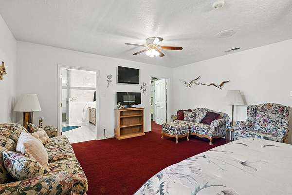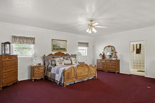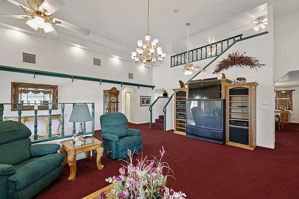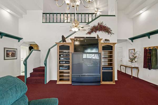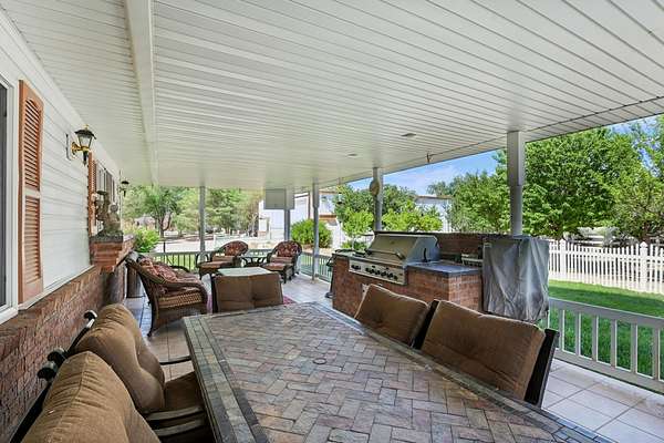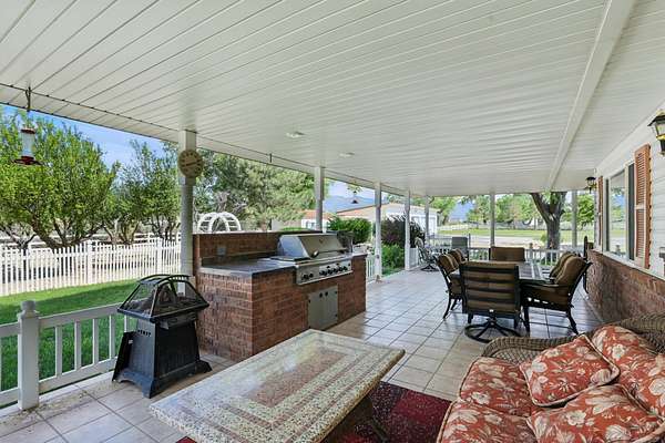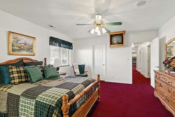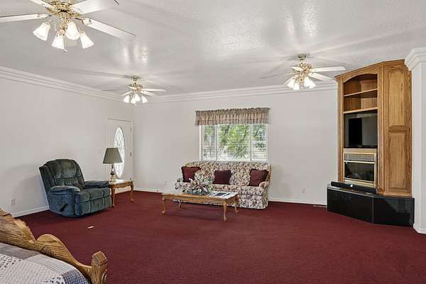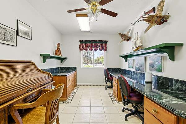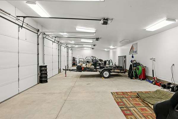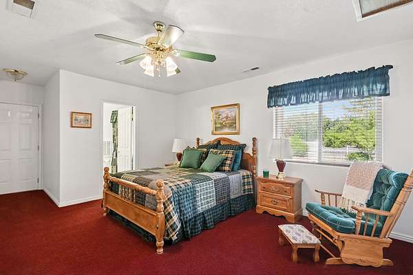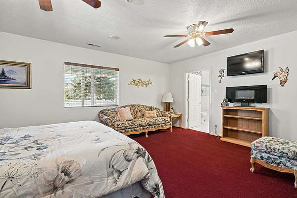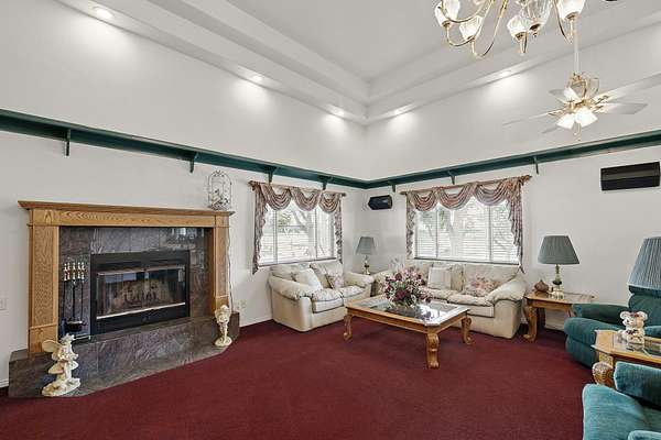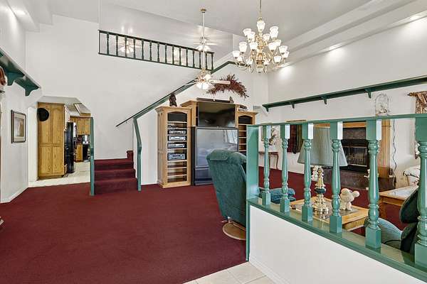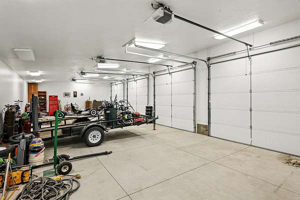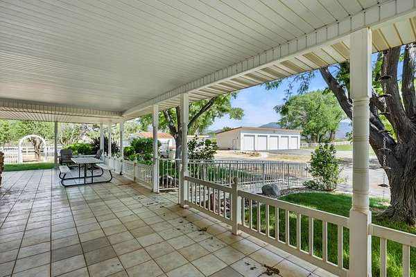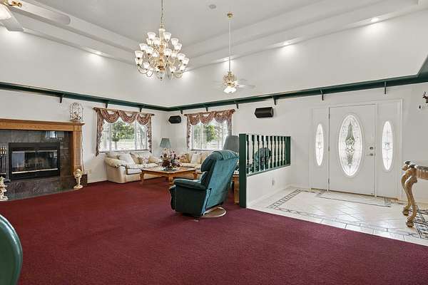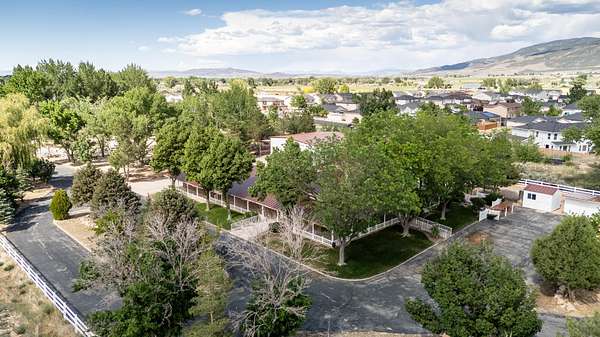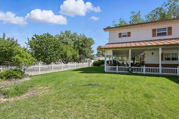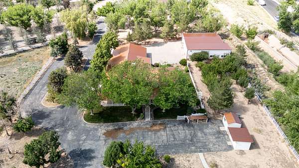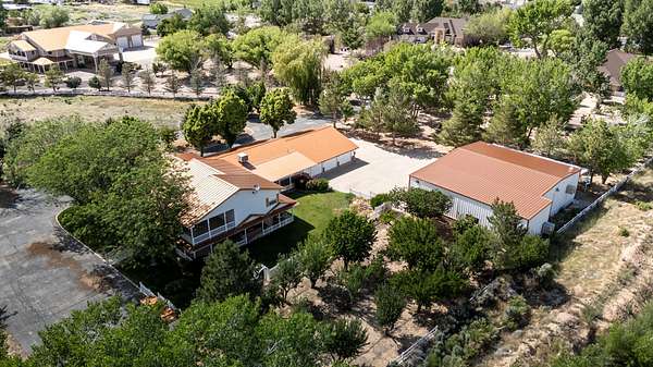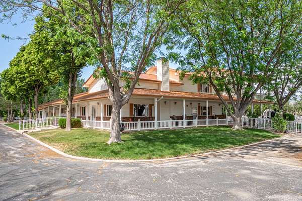 This classic home, set on an expansive 2.92-acre lot, offers 3,104 square feet of living space, featuring 3 bedrooms, an office, and 3.5 bathrooms. As you walk inside, the home welcomes you with an open living area featuring a cozy fireplace and plenty of room for family. The main floor includes a kitchen with marble counter tops, solid oak cabinets with pull out shelves in all the lower cabinets and is already plumbed for a stand-alone ice maker! You'll also find the dining room, office, laundry room, and half bathroom, along with two bedrooms, each with their own full bathroom. Upstairs, the loft area houses the master bedroom, which offers access to a deck and a spacious bathroom with a jacuzzi tub and a glass block walk-in shower. The property includes a 3-car attached garage and a sizable 2,925 square foot RV garage/shop that will accommodate a 45ft motorhome. The shop comes with 2 RV hookups, a 1-bedroom, 1-bathroom apartment and an upstairs storage area with a washer and dryer for the apartment. Additionally, there is a 5-car garage measuring 75 x 24 feet, a well house, a storage shed, and a charming fruit orchard that includes apples, peaches, plums and cherries. The covered porch comes equipped with an outdoor BBQ, furniture and a beautiful view. The yard holds two ponds with spill over fountains for fish and is completely fenced with a double automatic gate for entry! Take care of the lawn with a riding lawn mower that includes every attachment you could need to mow, apply fertilizer and weed killer. The owner's annual water expense is approximately $500 and the home is HOA free! Boat can be included if interested. Please reach out for any questions!