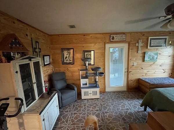 Blue Creek Property 17.93 acres +/- 2822 Old Mill Rd Ponce De Leon, Fl 32455 Property: This amazing farm has it all! Blue Creek, fed from the outflow of Vortex springs, flows for over 1400 ft through the entire Western boundary and has a perfect mix of forested and grassed areas. There is a clear spring that feeds a partially completed pond on north end of land. There are many food producing trees and plants surrounding the home and in the other areas these include but are not limited to: Food Producing Other Trees and Plants 2 different types of pear trees Fig trees Blueberry bushes Persimmon trees 2 types of scuppernongs Huckleberries Wild Black . Mayhaw trees . Date palms . Pecan trees . Chestnut tree . Chinkapin trees . Rosemary . Oregano . Chocolate mint . Crepe Myrtles (3 types) . Weeping Willow . Azaleas (3 types) . Bottlebrush . Catawba trees . Cypress trees . Cedars . Camellia . Grancy Grey Beard . Wisteria Trees (Lavender and White) Property structures and improvements Home: 3456+- sq ft Total 1924+- sq ft heated 484+- sq ft 2 car garage 400+- sq ft rear porch 648+- sq ft front porch 3 bedrooms 2 bathrooms Living room Kitchen Dining area Breakfast/sunroom 2 car garage Large pantry off kitchen Outdoor shower with entrance to master Large master closet Large partially enclosed sitting area on front porch Linen closet Back porch sitting area with closeable sunshade One bedroom convertible to office that has front outdoor entrance Barn 1 (concrete floor) 32x72 ft with 18x72 lean too 2 10x15ft finished rooms 10x32 ft loft with ladder Barn has lights and power 200 amp Includes PTO powered power backup generator Barn 2 (dirt floor) 40x48ft 200-amp RV hookup Storage/She Shed 12x24 ft 2 chicken coops 10x10 and 9x9 Livestock Shed 12x12 ft Aviary 12x12 ft Other amenities City sewer Septic tank 2 Wells 1 Artesian well Fenced on three sides Wall mounted fan in garage Multiple ceiling fans over front and back porch areas Outside access for outdoor shower from master suite Dryer Electric Stove Refrigerator Wall mounted fan in outdoor shower Gate opener on main gate New roof on home New metal siding on home Large seating area in outdoor shower which includes hot and cold water Large rain drop type shower heads on all 3 showers Fish cleaning sink in barn 2 purple Martin houses Large concrete picnic tables at picnic area at creek.