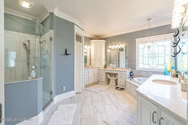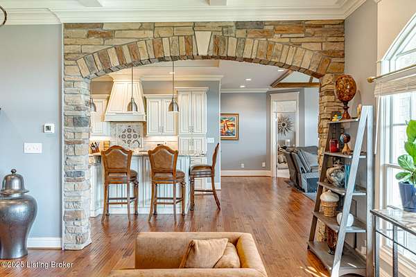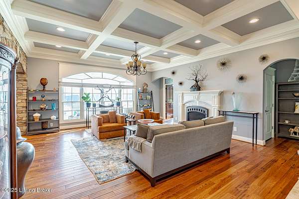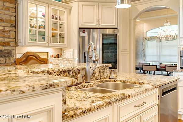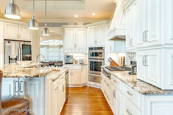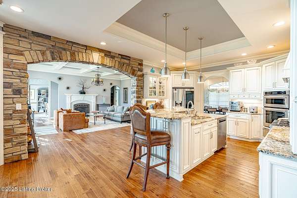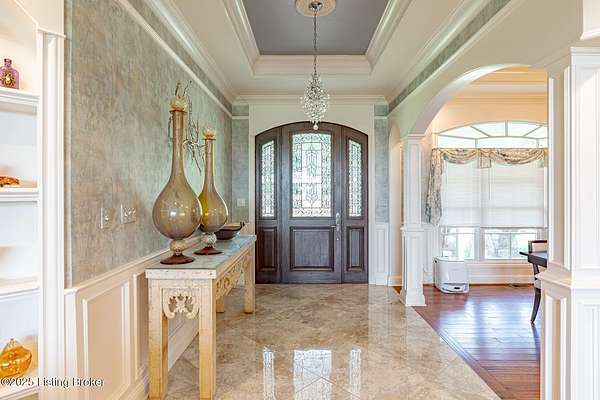 PRICED TO SELL! Now available on 5+ Acres in sought after neighborhood. Welcome to this custom-built home nestled on over five acres. The. Grand foyer that sets the tone for the spacious living areas throughout. The gourmet kitchen is a chef's dream, featuring a 6-burner gas cooktop, double ovens, warming drawer, marble countertops, center island, large pantry, and an abundance of cabinetry-perfect for entertaining and everyday living. Enjoy two cozy gas fireplaces-one in the main living area and another in the hearth room off the kitchen. Open the back door to a covered veranda overlooking your expansive fenced acreage. Back inside the home you will find your huge primary suite, two bedrooms, baths, large basement with the start of of a great theater room, exercise room (or additional bedroom), full bath and additional garage space. This home needs TLC and is priced below comps for that reason. Here is your chance to make it your own and create a space tailored to you! Sold as-is. Make an offer. Must sell so call today to schedule a showing.