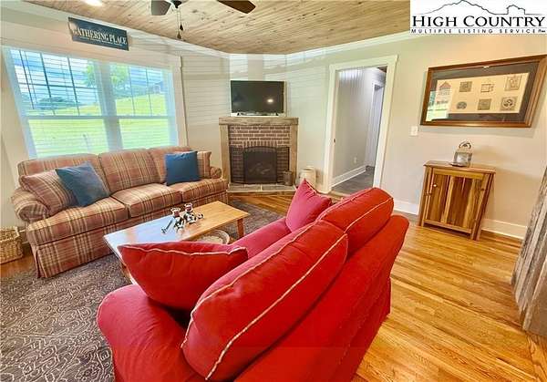 Charming, fully renovated, and rich with character--this beautifully updated home blends timeless 1940s craftsmanship with the comfort and efficiency of modern living. Originally constructed in 1948, the property underwent a complete transformation in 2021-2022, including all-new plumbing, electrical, and insulation, along with a full interior and exterior facelift. Every inch of this home has been thoughtfully reimagined, starting with its warm, refinished original hardwood floors and tongue-and-groove ceilings that add rustic elegance throughout. The heart of the home is the updated kitchen, where custom cabinetry, stainless steel appliances, and a premium dual-fuel range (gas cooktop with electric oven) are paired with a sleek vent hood and timeless subway tile backsplash. Enjoy cozy evenings in the inviting living room, complete with a classic brick fireplace and gas logs, or bask in morning sunlight from the enclosed east-facing sunroom featuring low-maintenance Trex decking. Natural light fills the home through newly installed double-hung windows, and fresh interior paint throughout gives every space a bright, refreshed feel. The master bedroom offers thoughtful details like a built-in custom king-size headboard and dual closets, while the bathrooms boast stylish granite vanities, new hardware and custom shelving. Upstairs, a spacious second bedroom awaits with a tongue-and-groove tray ceiling and a cozy seating area--perfect as a guest suite, reading nook, or creative retreat. Third bedroom is lovingly referred to as the "bunkroom" and houses two sets of bunkbeds. The home is surrounded by quiet, peaceful pasture land, offering a serene setting and gentle natural beauty. A natural spring on the property has been professionally encapsulated for added value and uniqueness. With modern systems, custom finishes, and a picture-perfect country setting, this one-of-a-kind home offers both the soul of the past and the peace of mind of a brand-new build. Ceiling height throughout a portion of second level is 6'10" and not included in the HLA square footage.